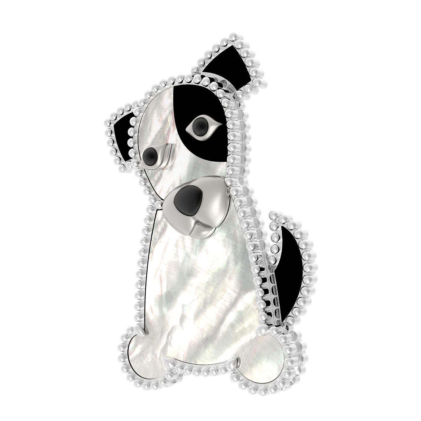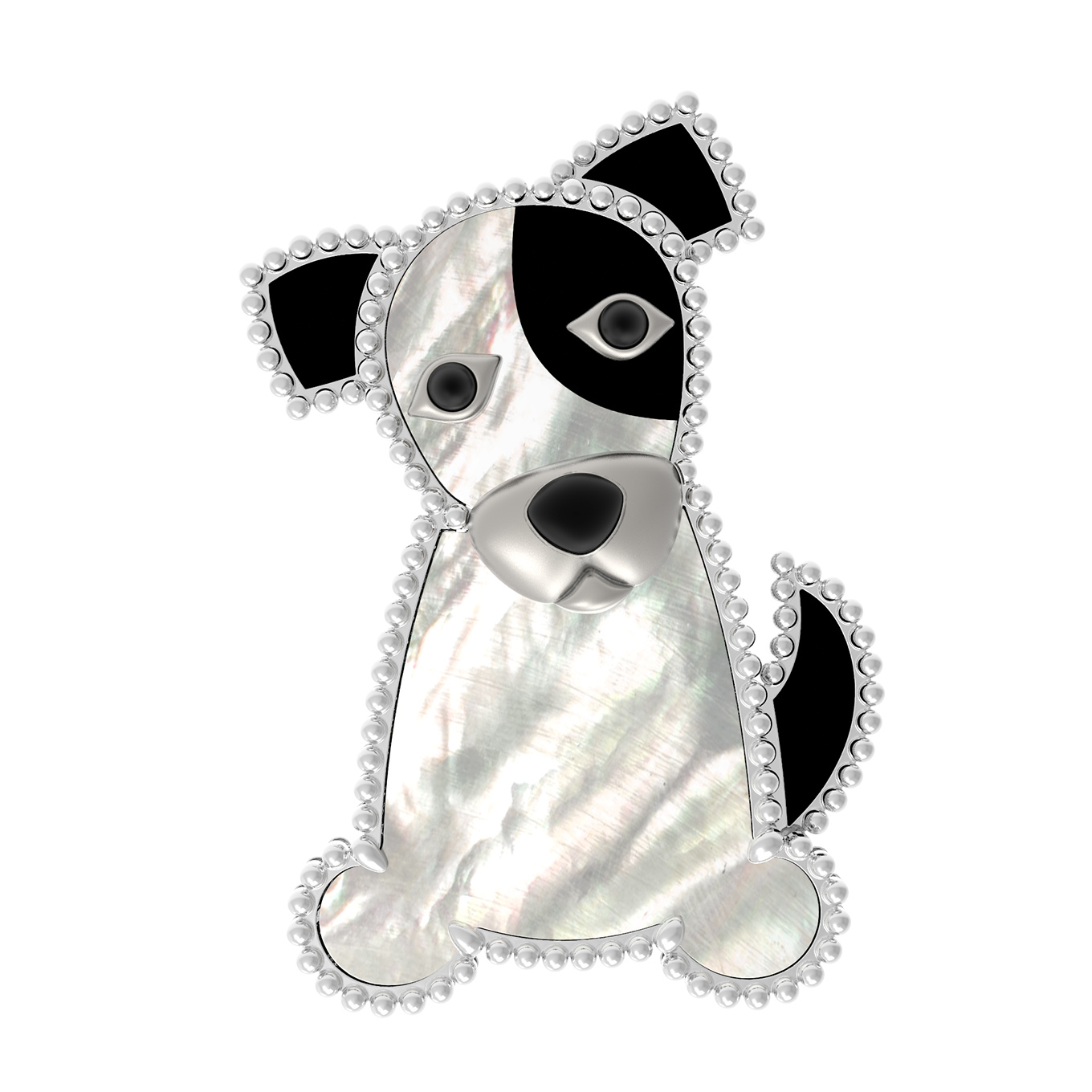 Брошь из белого золота c эмалью, ониксом и перламутром