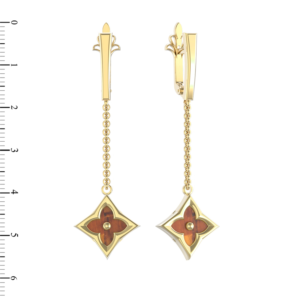 Серьги из лимонного золота c тигровым глазом