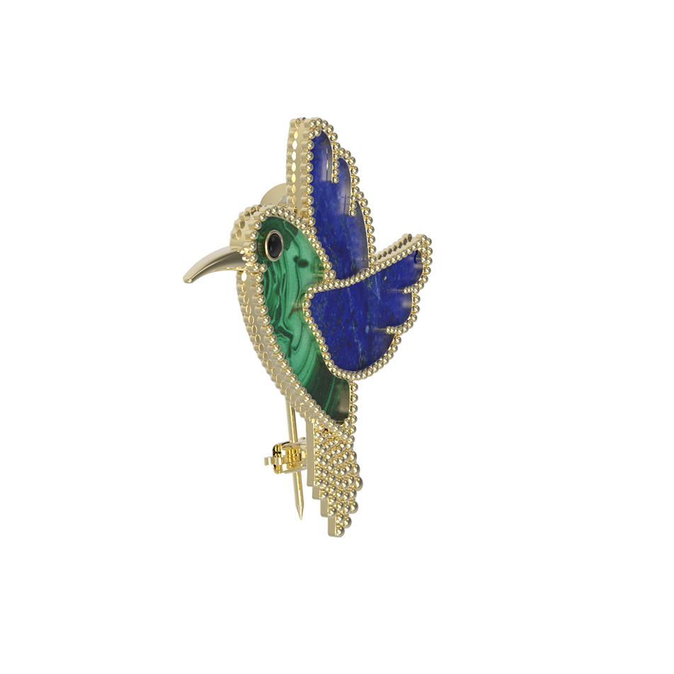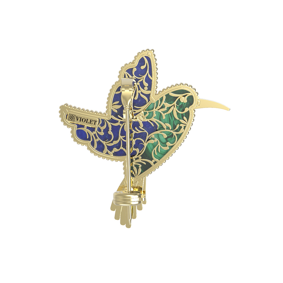 Брошь из лимонного золота c эмалью, лазуритом и малахитом