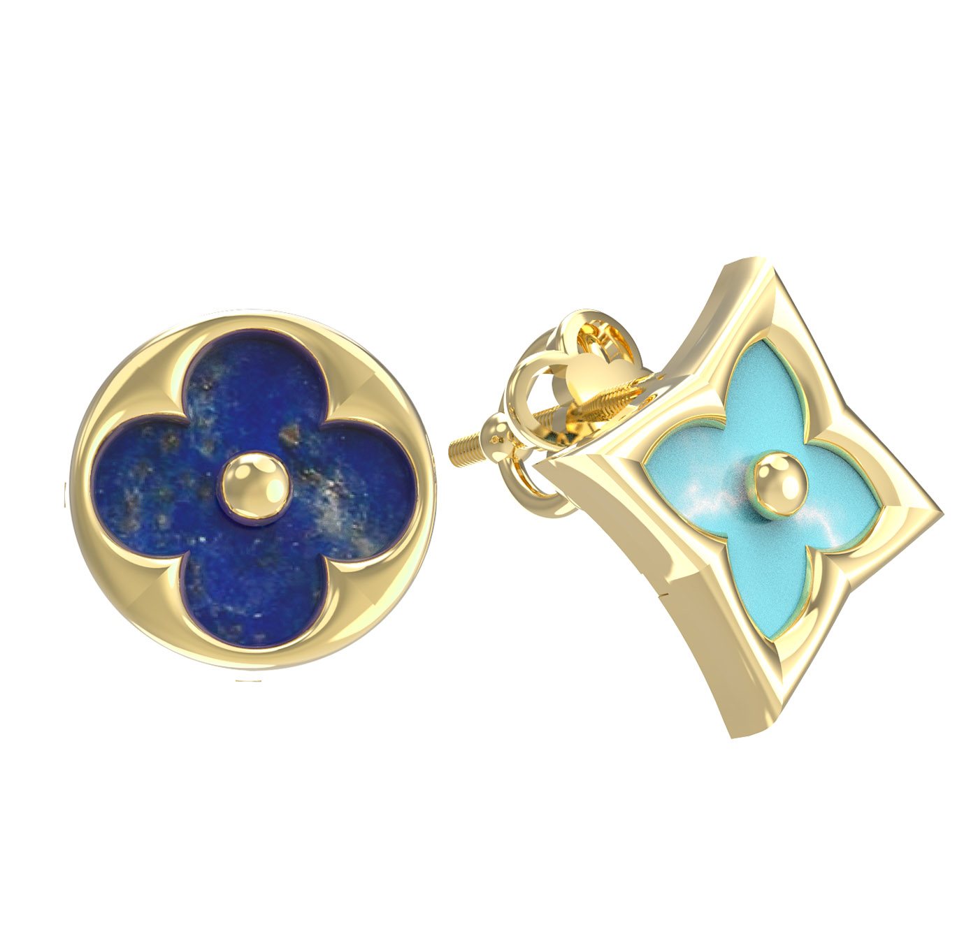 Серьги из лимонного золота c бирюзой и лазуритом
