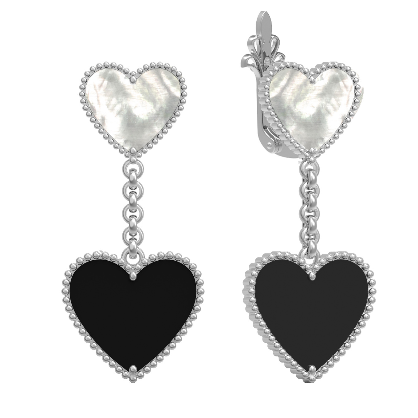 Серьги из белого золота c ониксом и перламутром