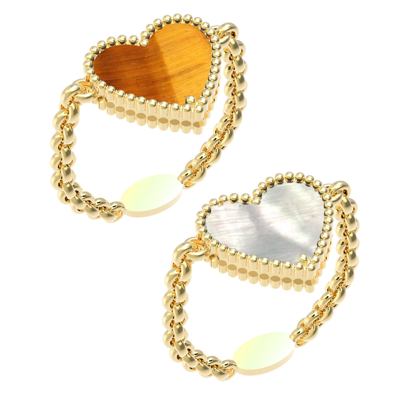 Кольцо из лимонного золота c тигровым глазом и перламутром