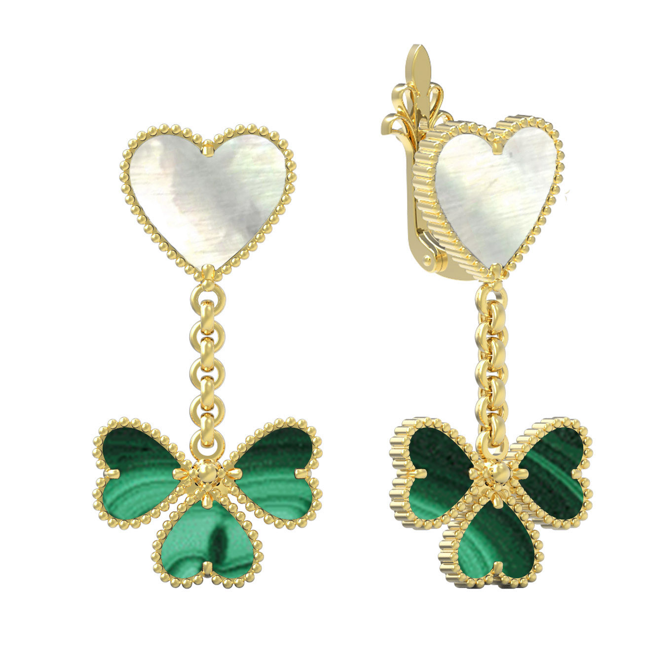 • Серьги из лимонного золота c тигровым глазом и перламутром