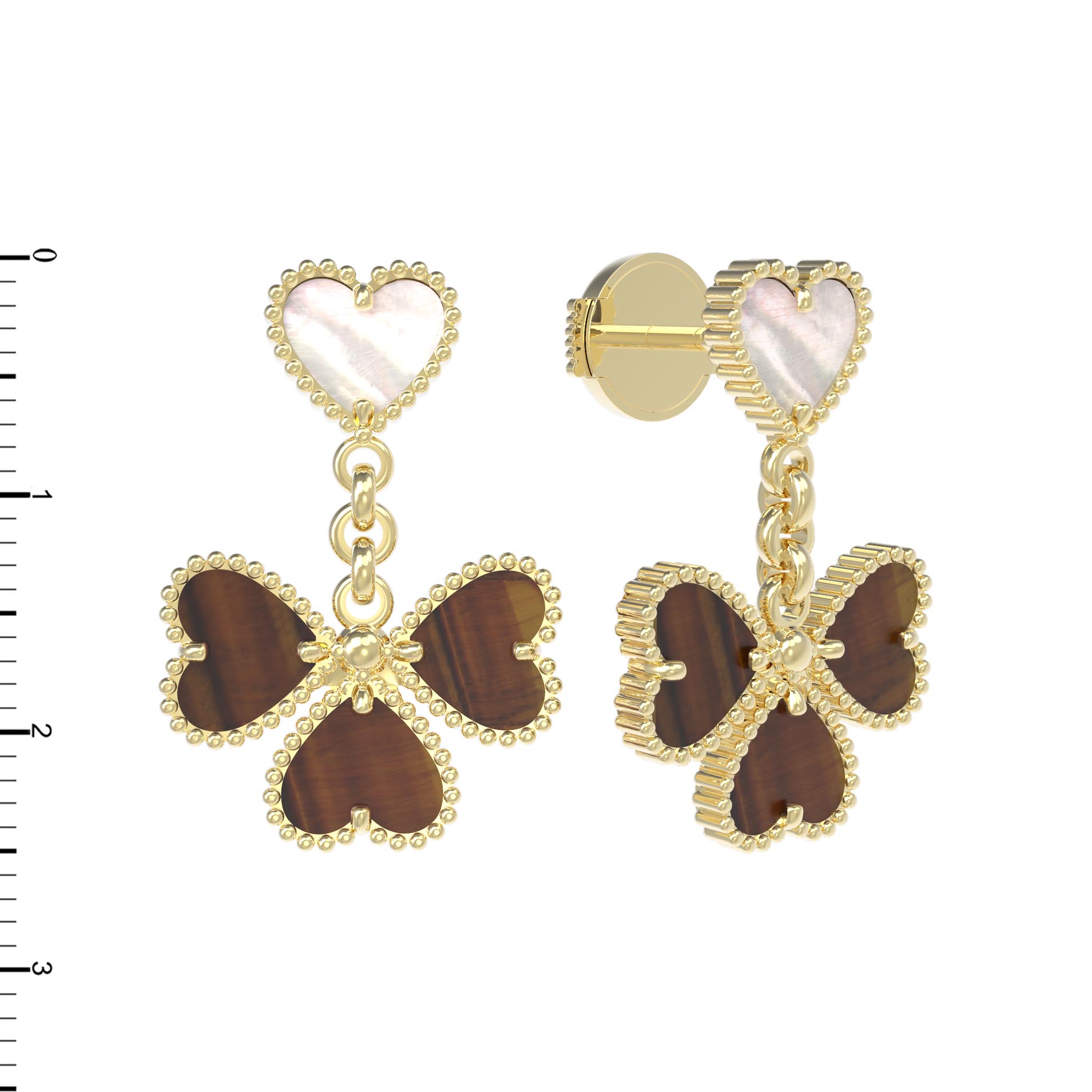 Серьги из лимонного золота c тигровым глазом и перламутром