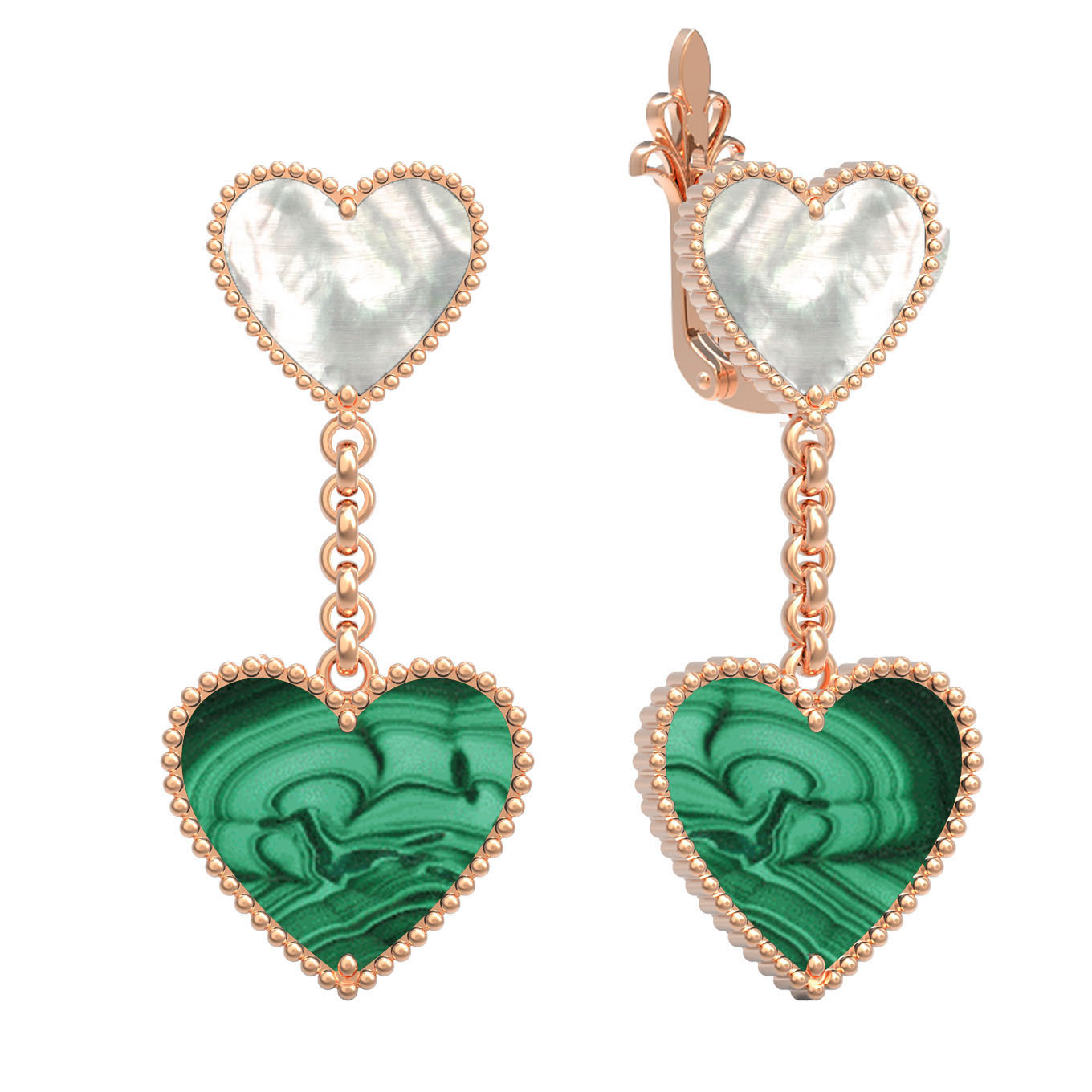 • Серьги из золота c малахитом и перламутром