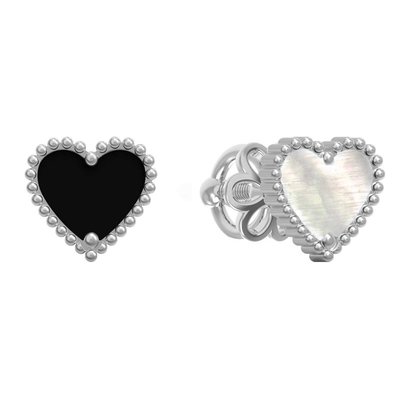 Серьги из белого золота c ониксом и перламутром
