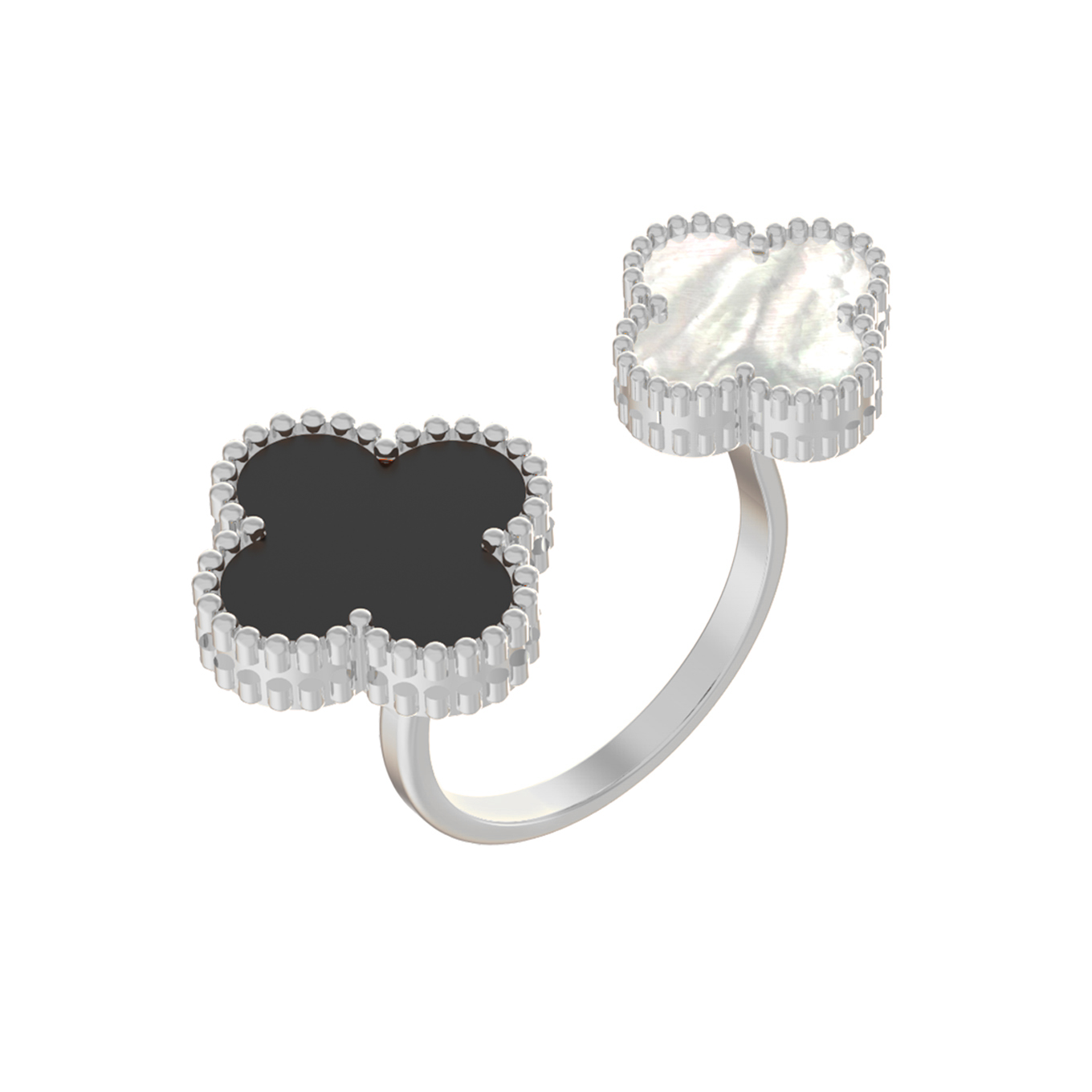 Кольцо из белого золота c ониксом и перламутром