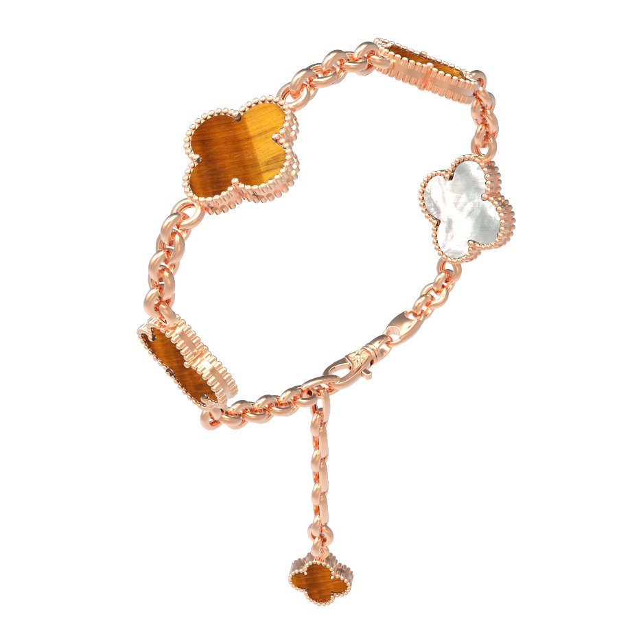 Браслет из золота c тигровым глазом и перламутром