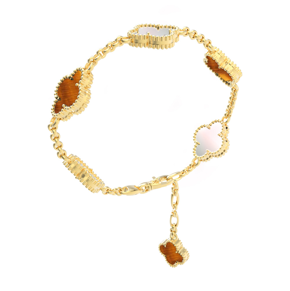 Браслет из лимонного золота c тигровым глазом и перламутром