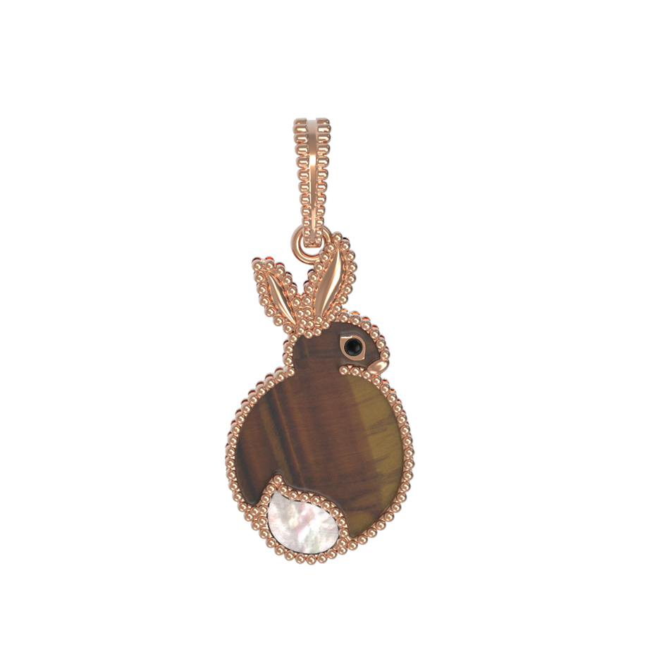 Подвеска из золота c эмалью, тигровым глазом и перламутром