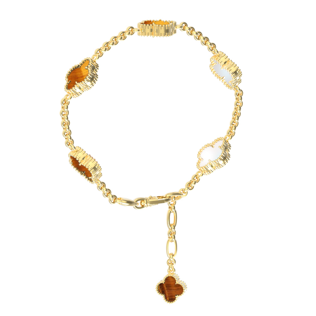 Браслет из лимонного золота c тигровым глазом и перламутром
