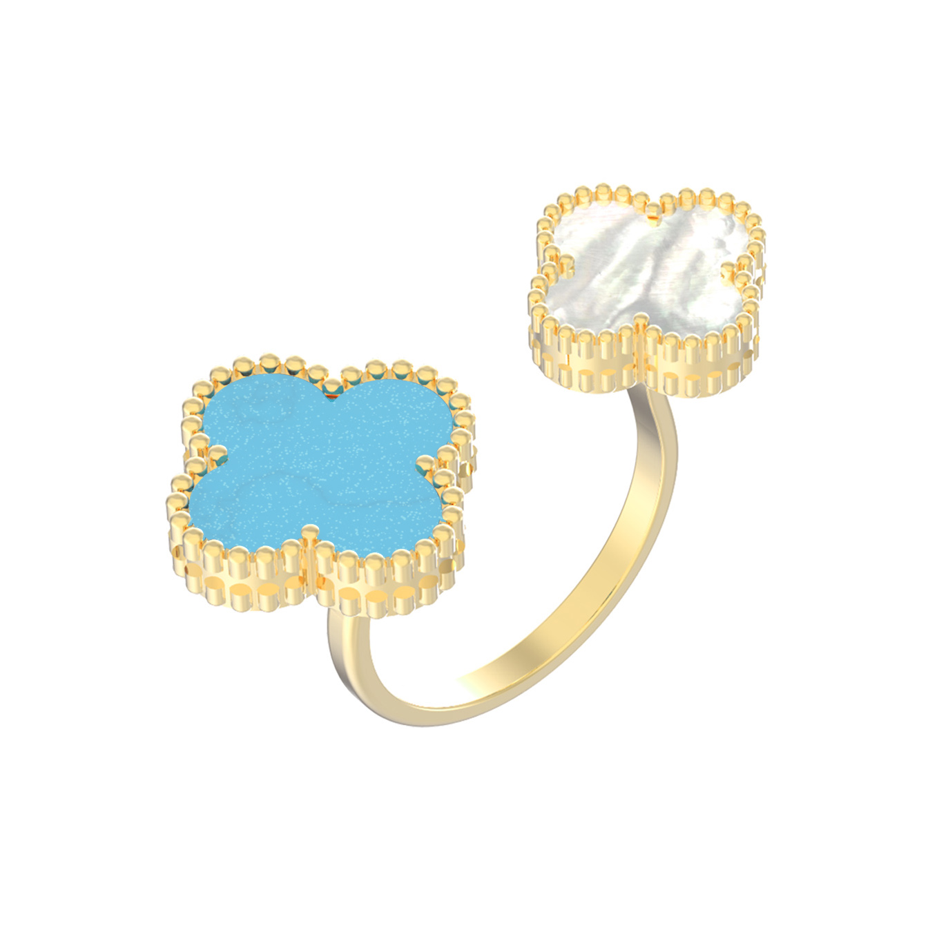 Кольцо из лимонного золота c бирюзой и перламутром