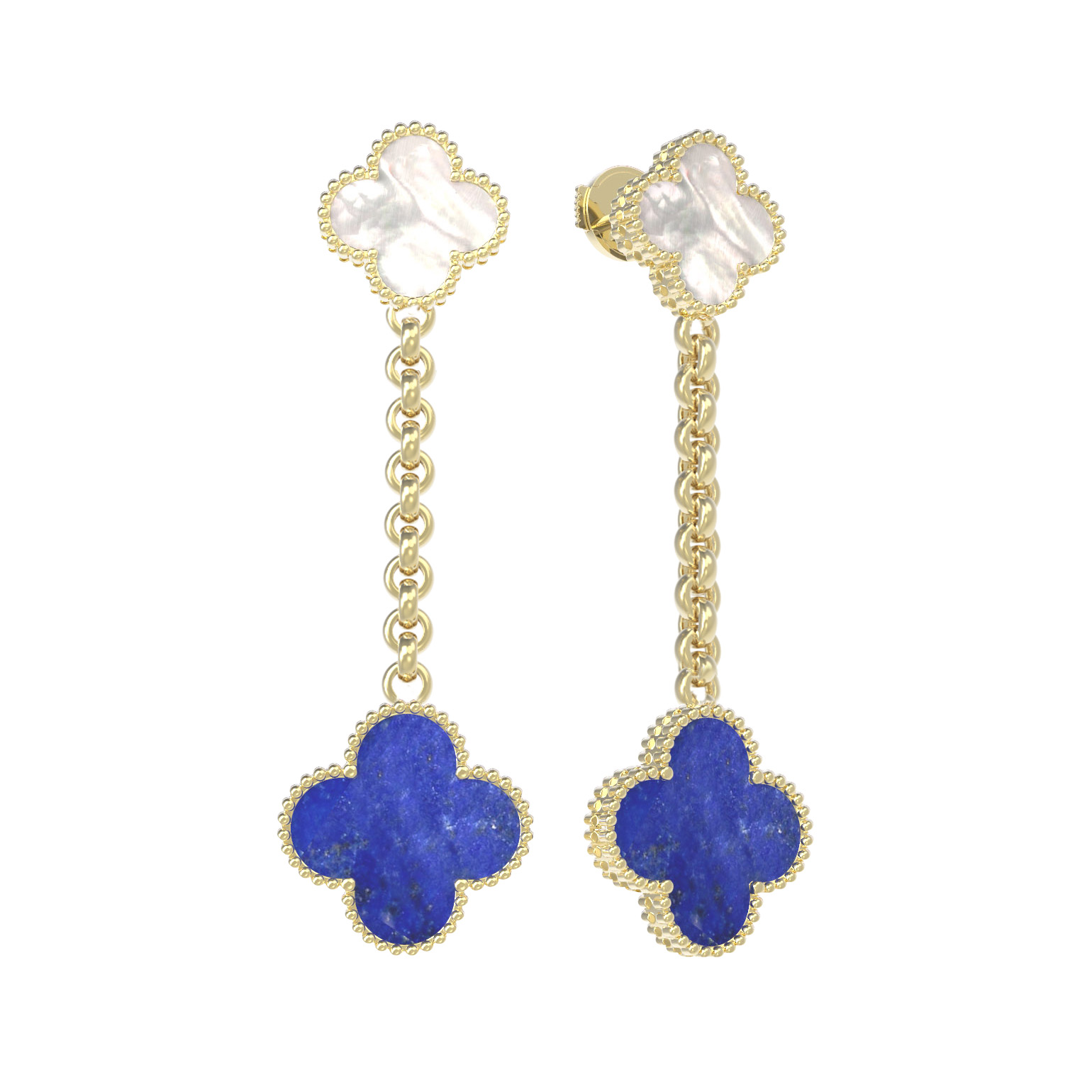Серьги из лимонного золота c лазуритом и перламутром