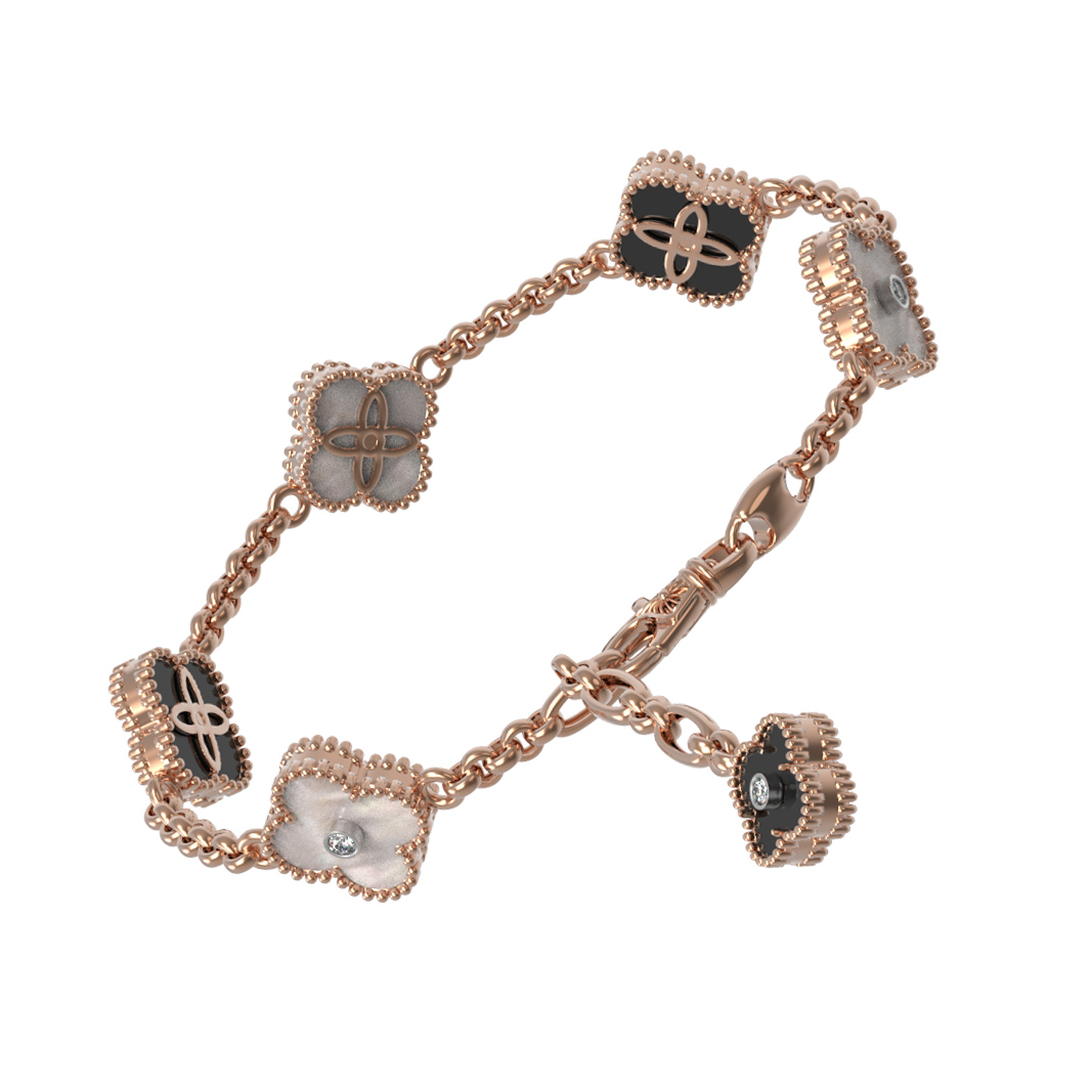 Браслет из золота c бриллиантами, ониксом и перламутром