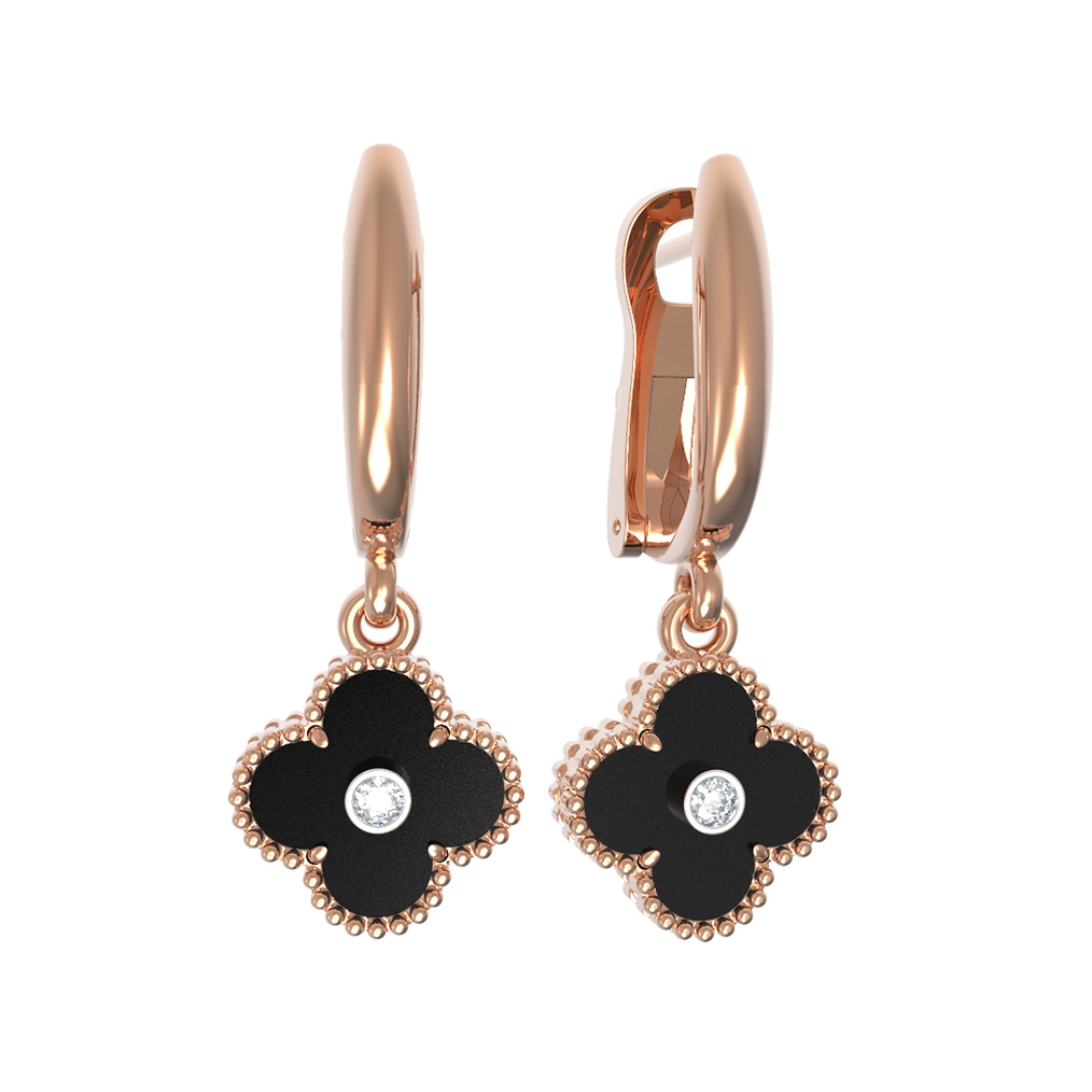 Серьги из золота c бриллиантами и ониксом
