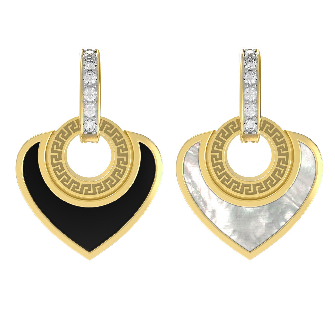 Подвеска из лимонного золота c фианитом, ониксом и перламутром