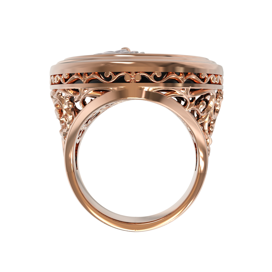 Кольцо из золота c ониксом и перламутром