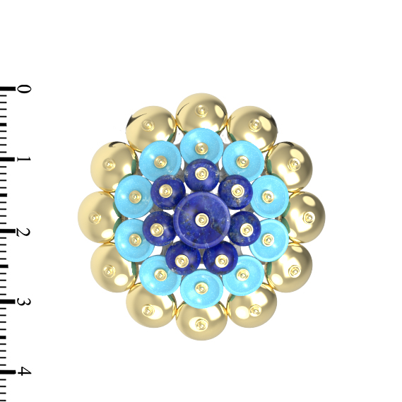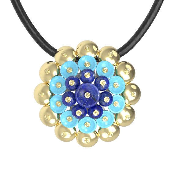 Подвеска из лимонного золота c бирюзой и лазуритом