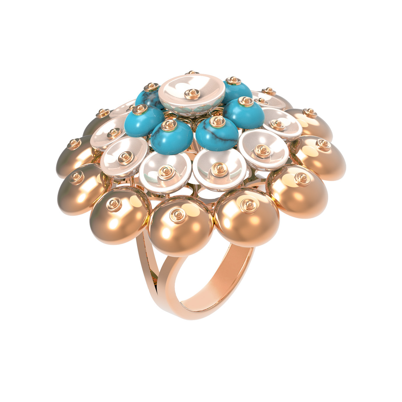 Кольцо из золота c бирюзой и перламутром