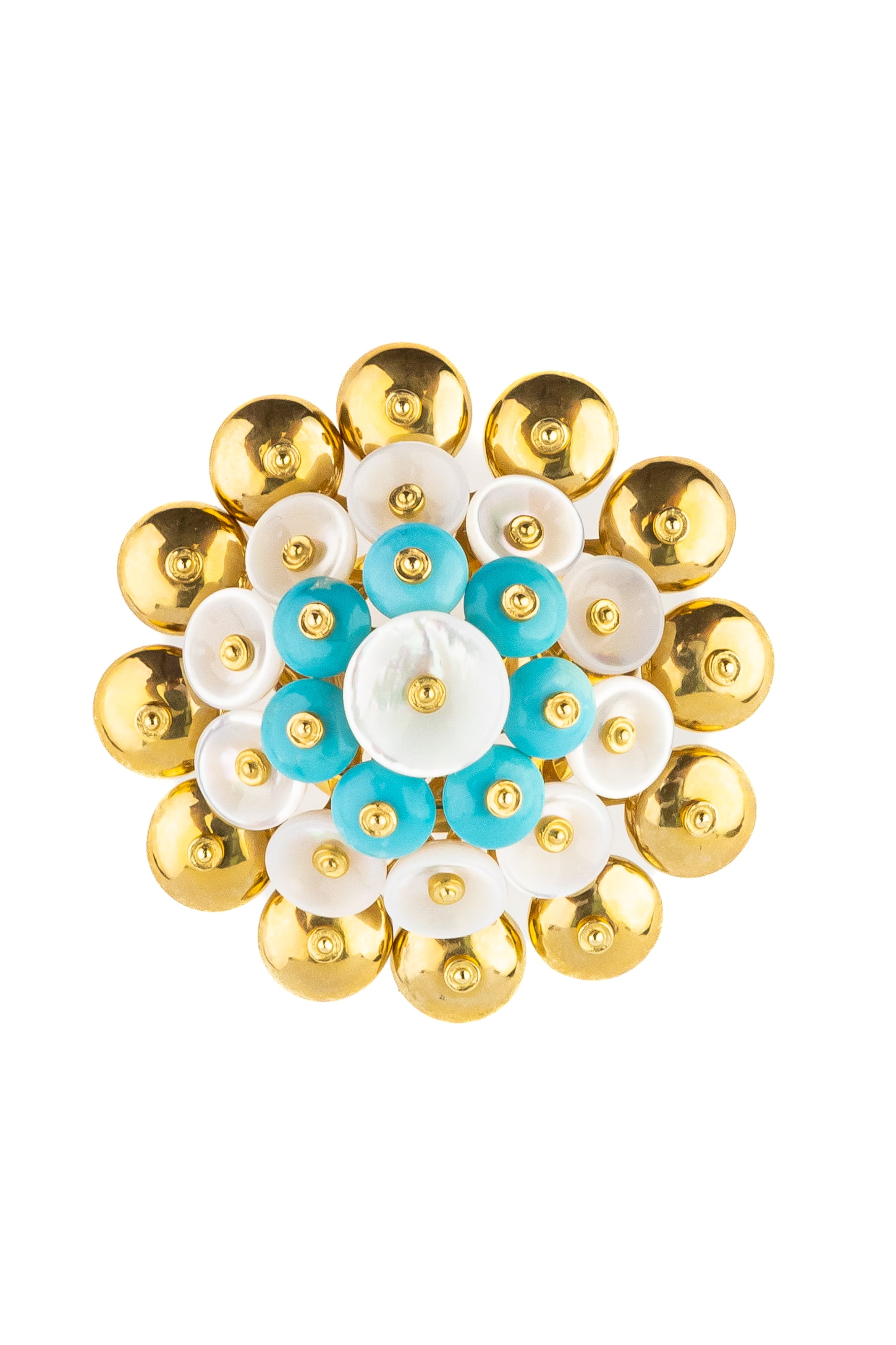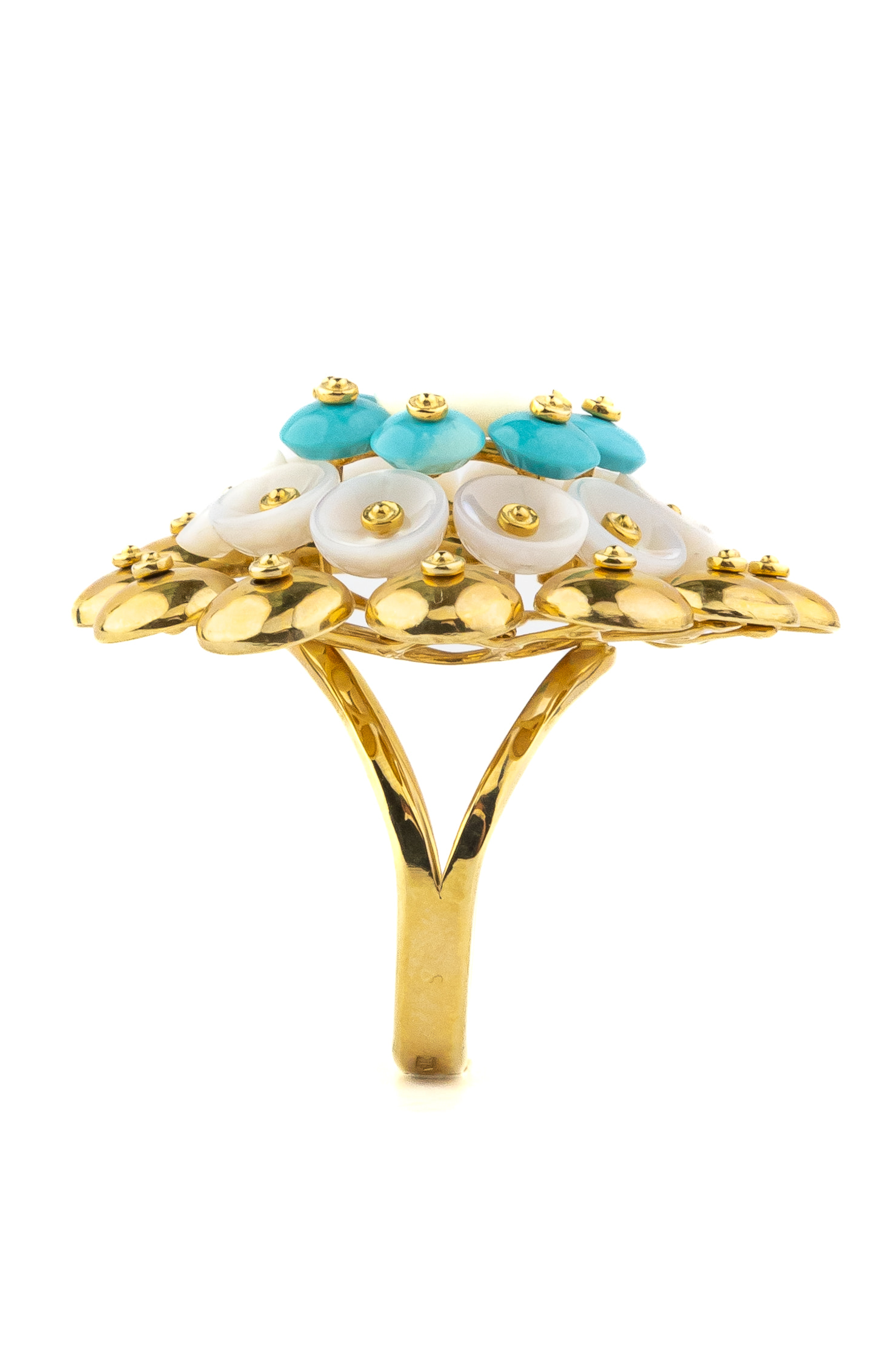 Кольцо из лимонного золота c бирюзой и перламутром