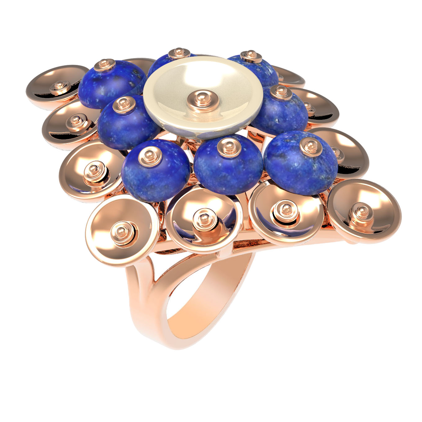 Кольцо из золота c лазуритом и перламутром