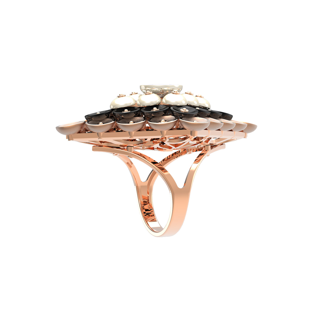 Кольцо из золота c ониксом и перламутром