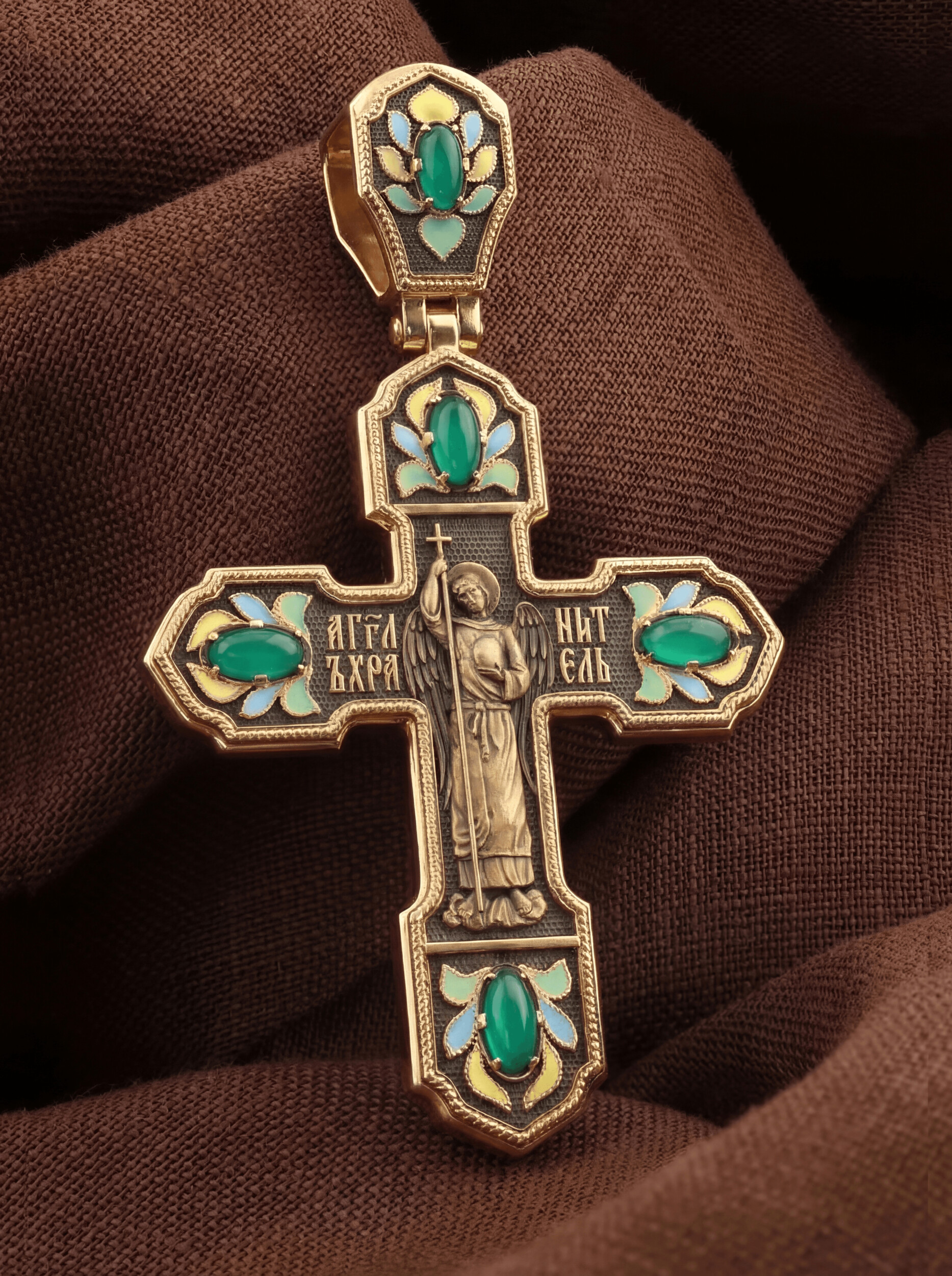 Основой композиции оборотной стороны является ростовое изображение Ангела Хранителя. Ангел, который дается каждому человеку в Крещении для попечения и защиты его души. Ангел Хранитель неотступно находится рядом с человеком, помогая, оберегая и наставляя его, а после смерти сопровождает его душу через мытарства.