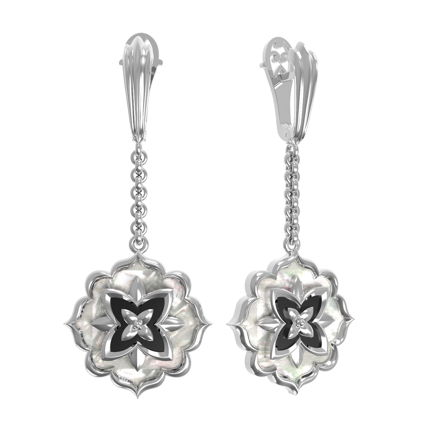 Серьги из белого золота c ониксом и перламутром