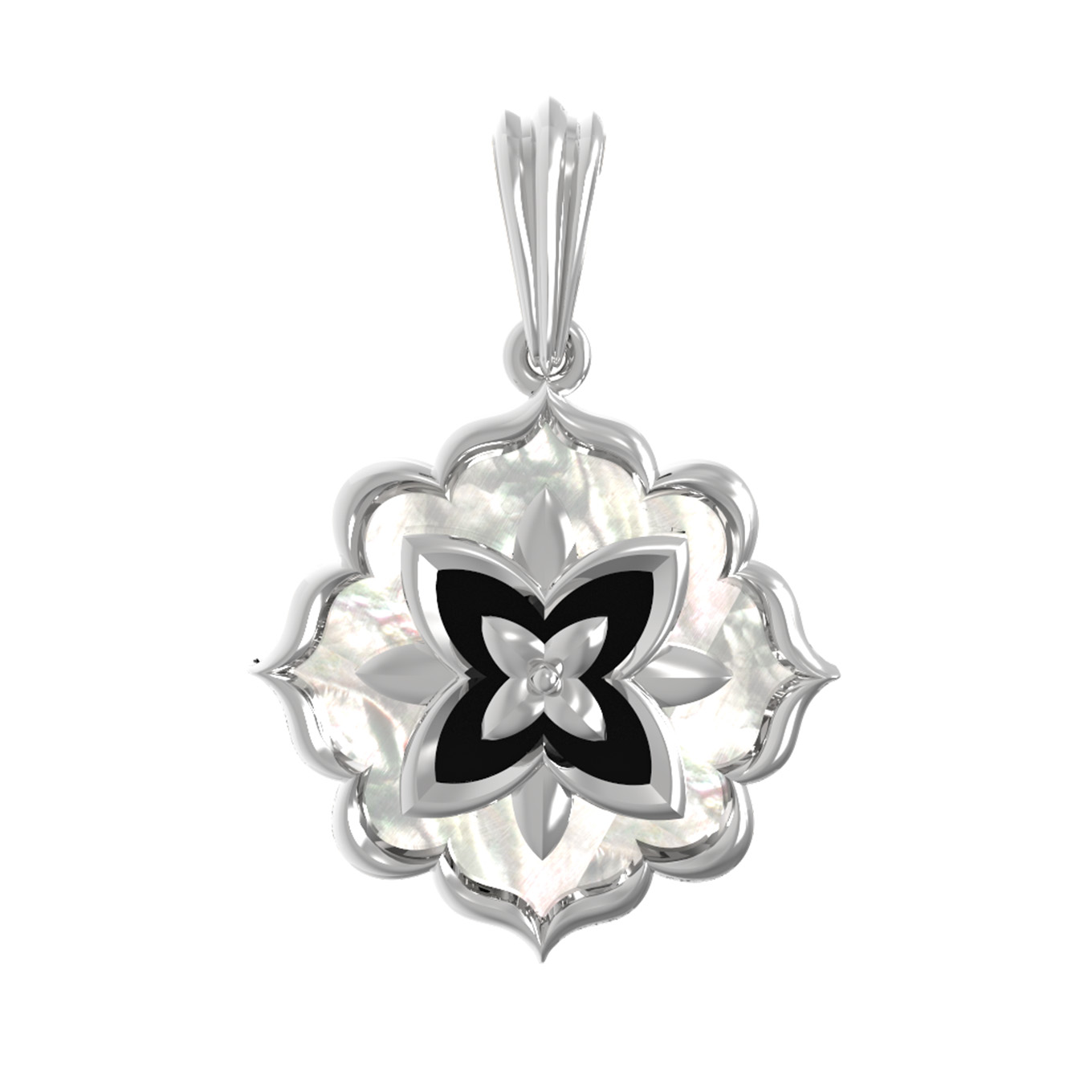Подвеска из белого золота c ониксом и перламутром