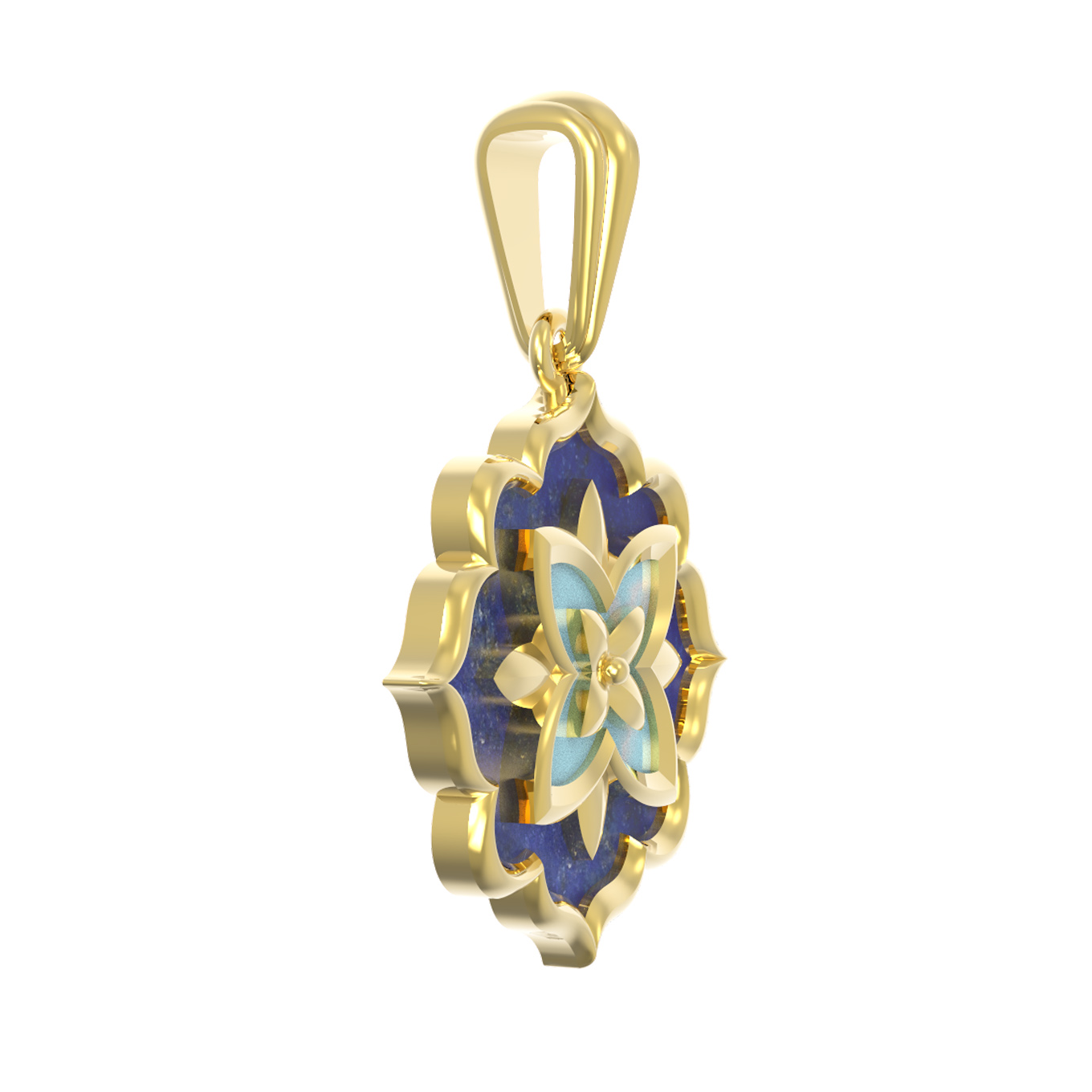 Подвеска из лимонного золота c бирюзой и лазуритом