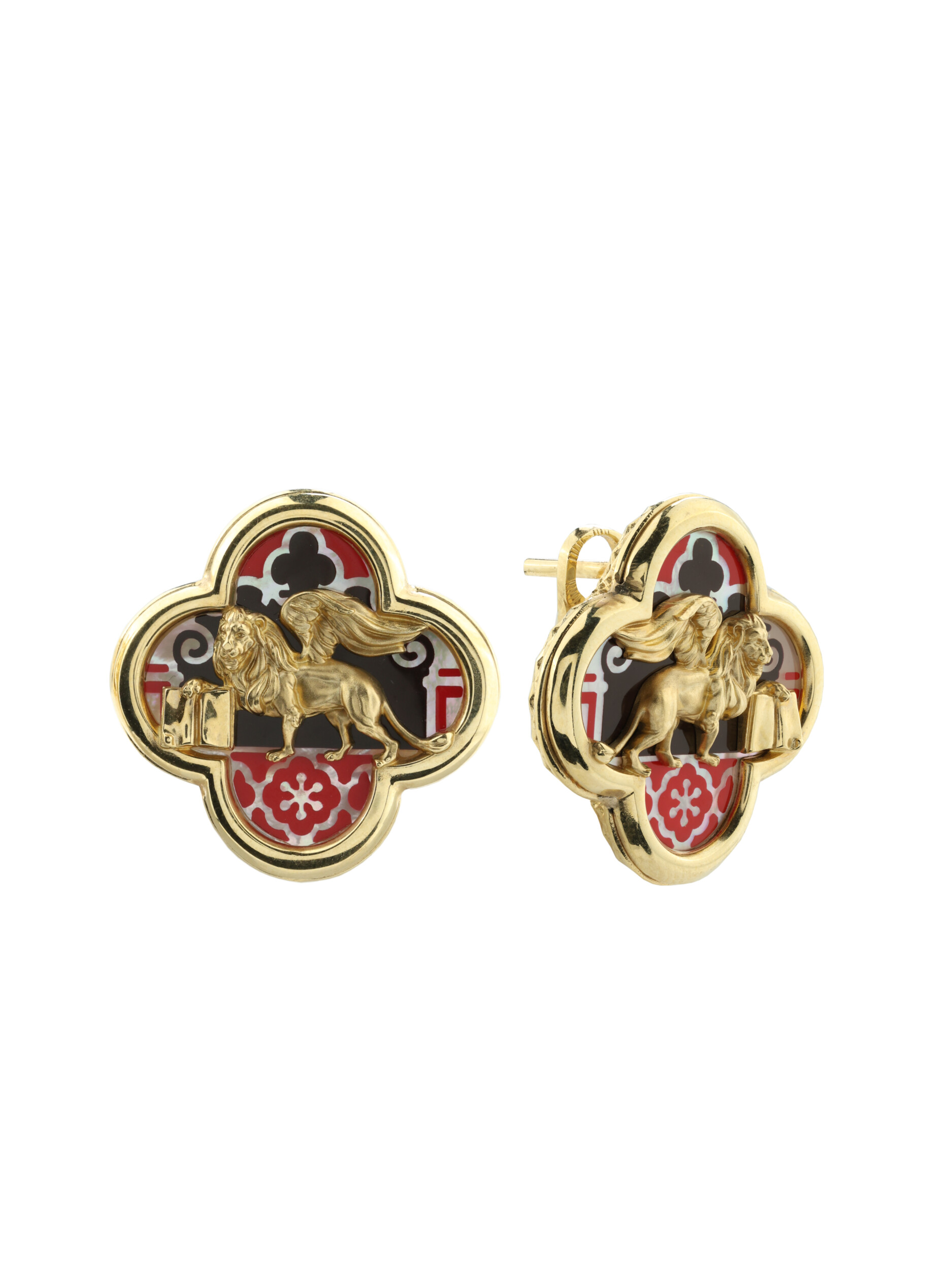 Серьги из лимонного золота c эмалью и перламутром