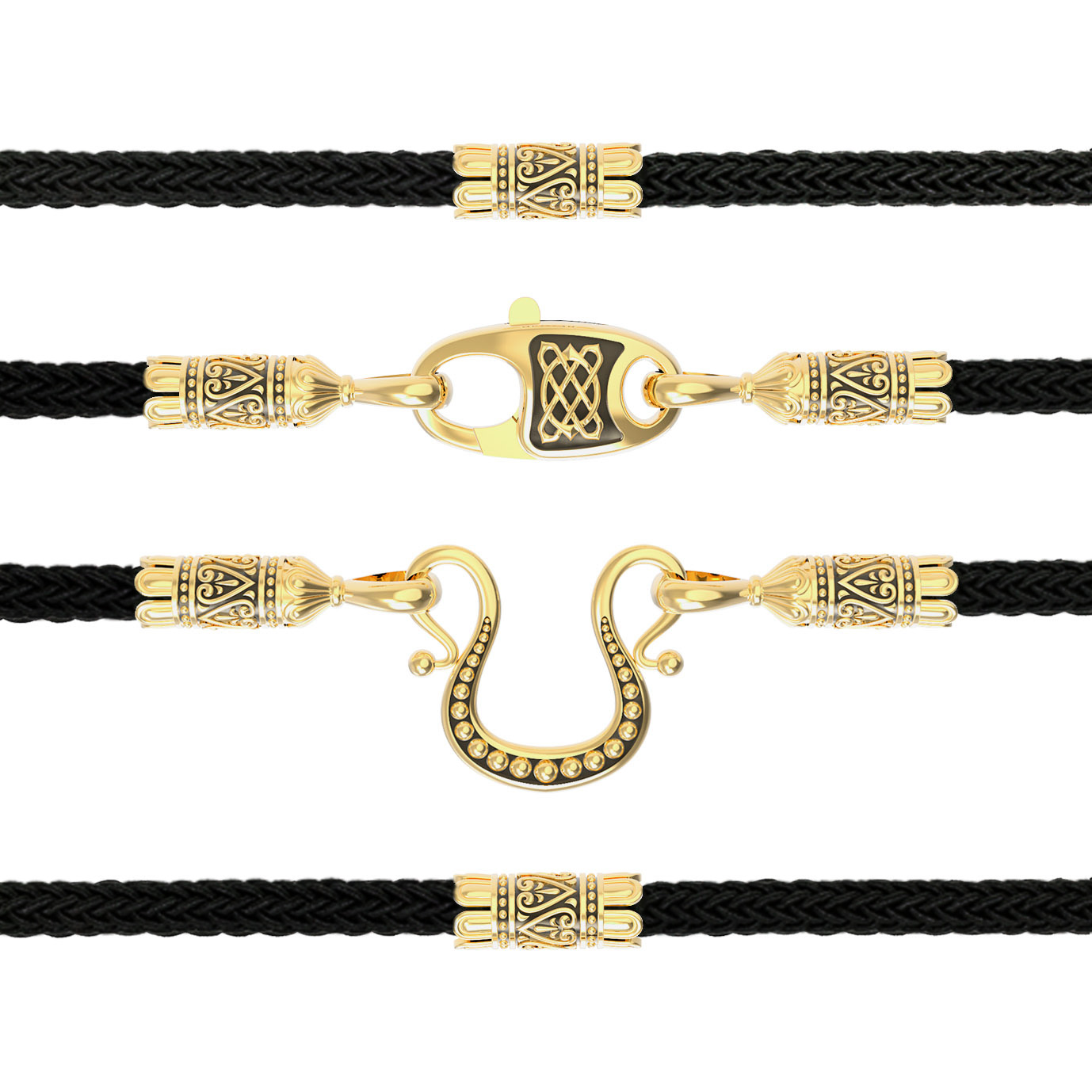 Шнурок шёлковый из лимонного золота c шёлковым шнурком
