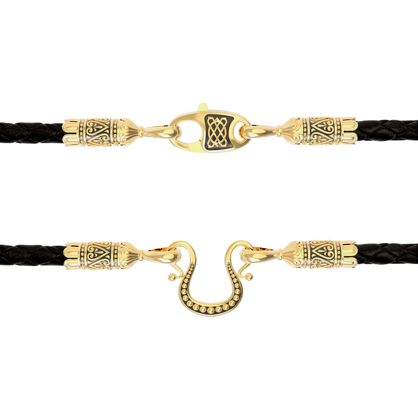 Гайтан из лимонного золота c кожаным шнурком