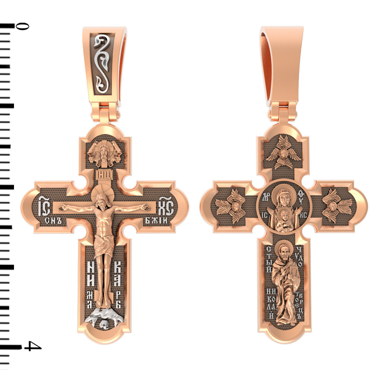 У основания креста в полный рост изображен самый любимый святой Православной Церкви — Николай Чудотворец. Святой почитается как целитель болезней, покровитель путешествующих, особенно по морю, помощник в торговле, учебе, а также в поисках достойного супруга.