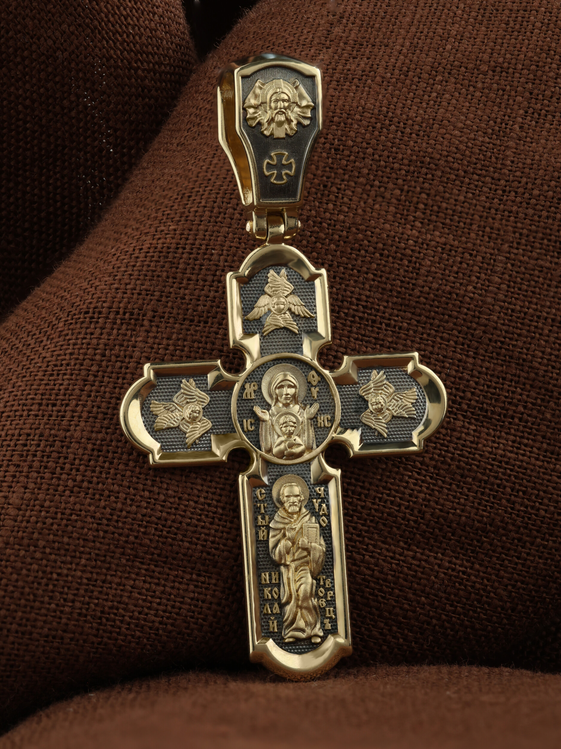 У основания креста в полный рост изображен самый любимый святой Православной Церкви — Николай Чудотворец. Святой почитается как целитель болезней, покровитель путешествующих, особенно по морю, помощник в торговле, учебе, а также в поисках достойного супруга.