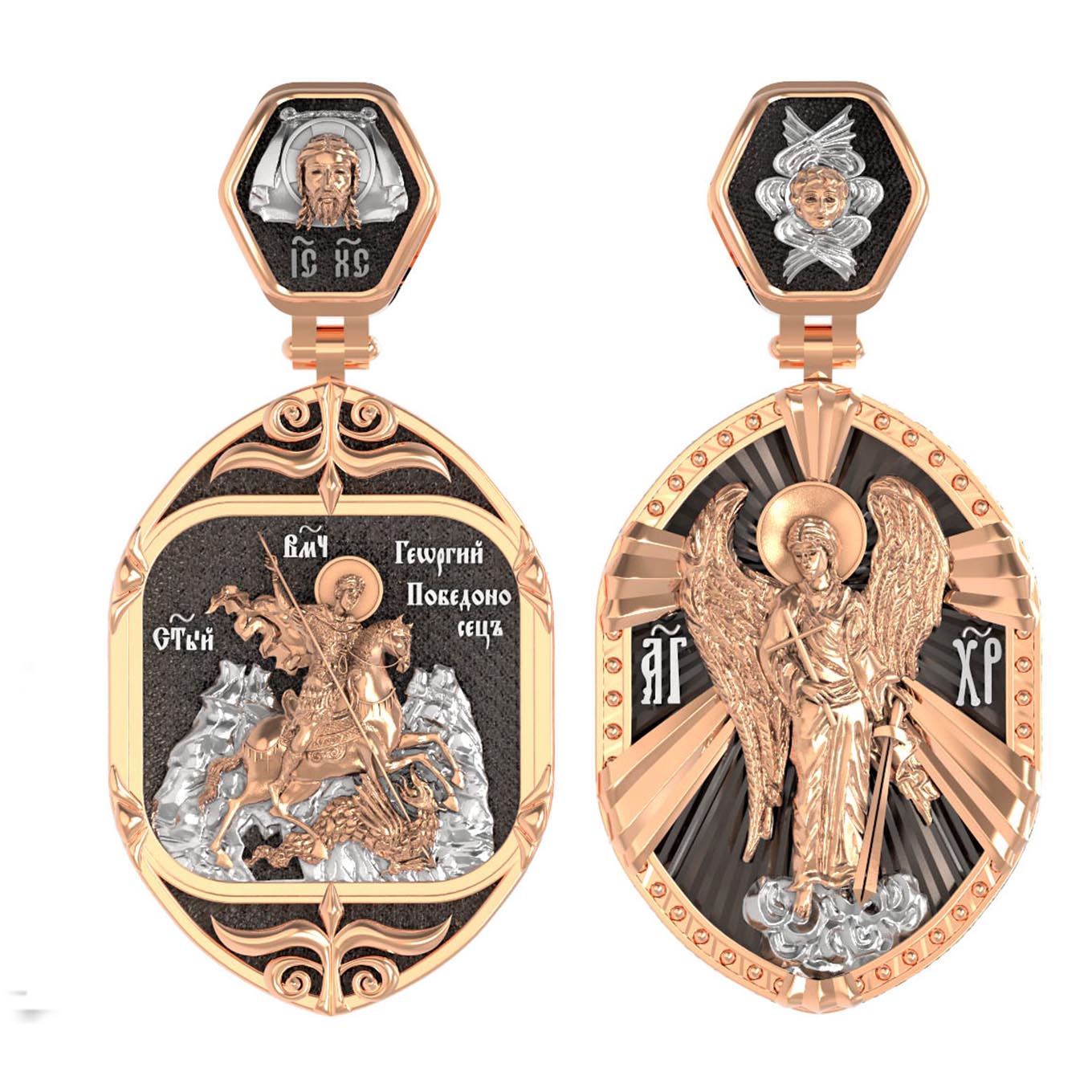 Основой композиции лицевой стороны является изображение Святого Георгия Победоносца.