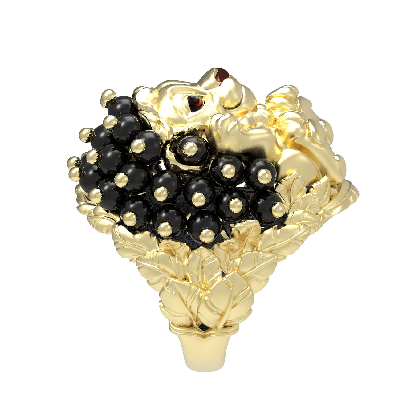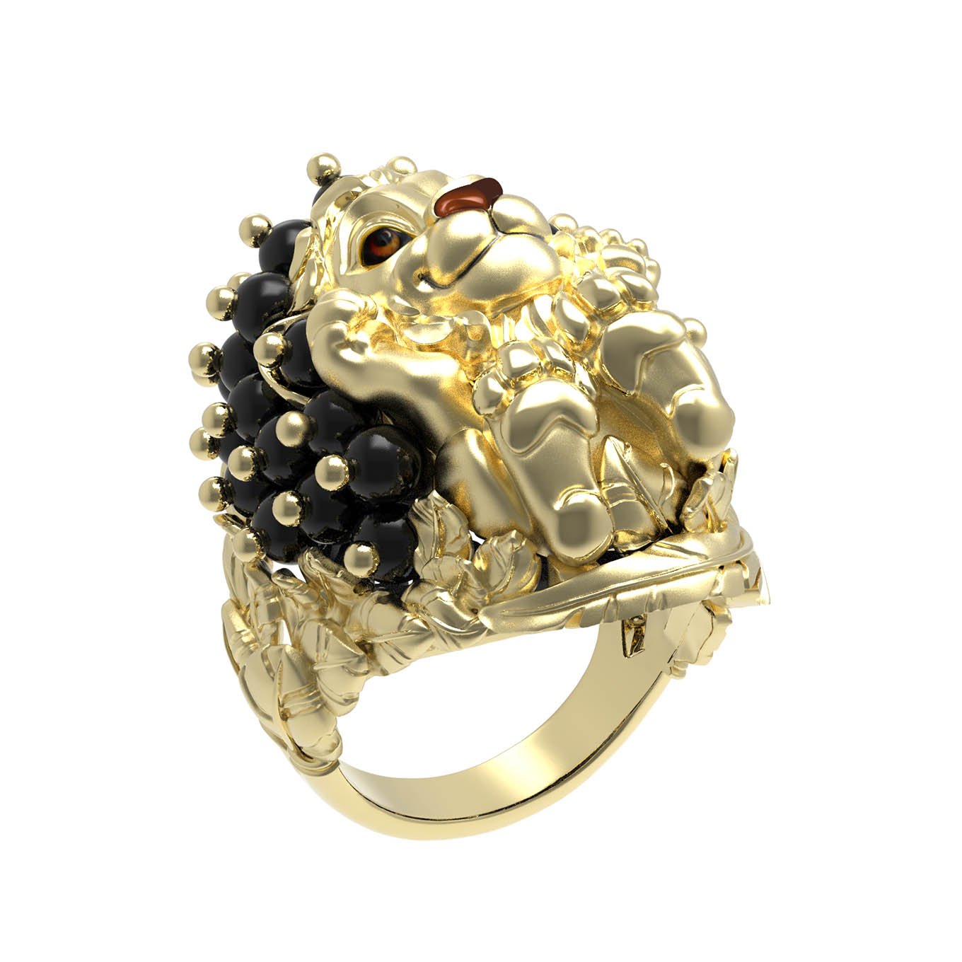 Кольцо из лимонного золота c эмалью и ониксом