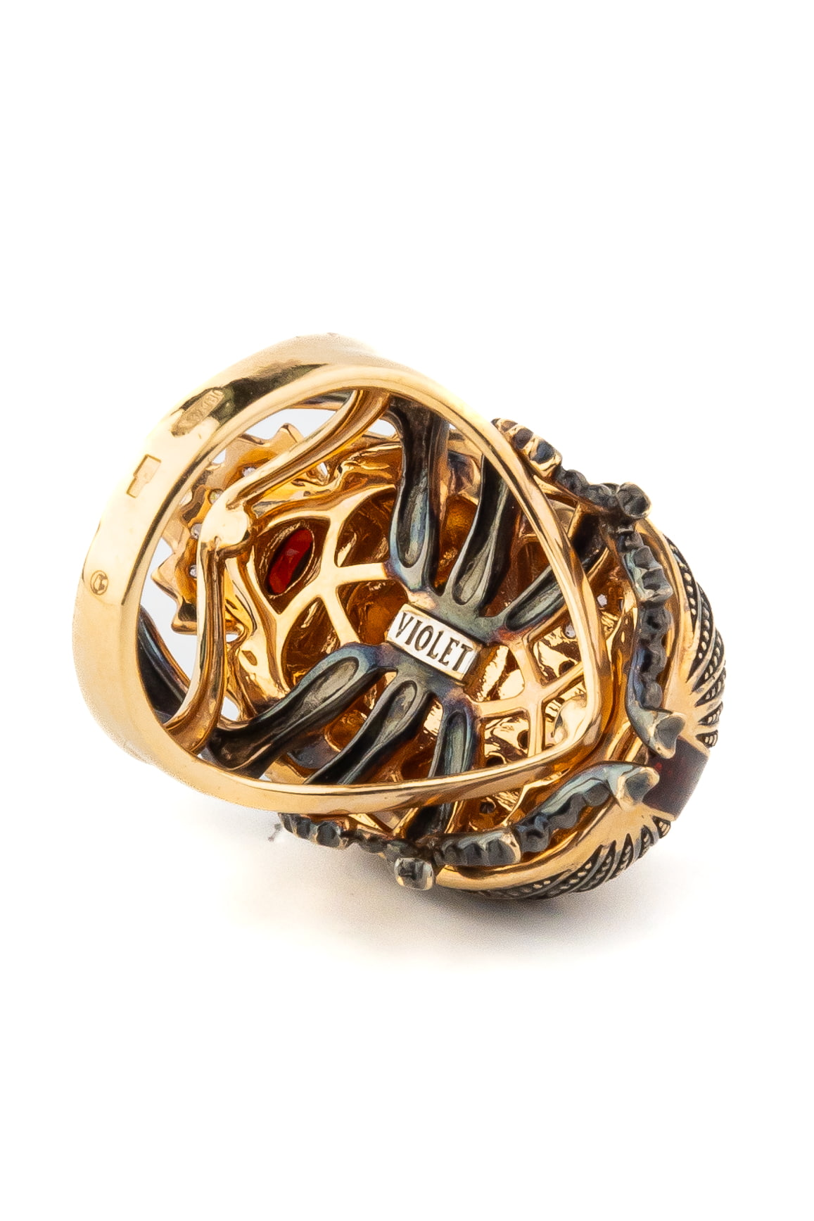 Кольцо из золота c эмалью, фианитом и гранатом