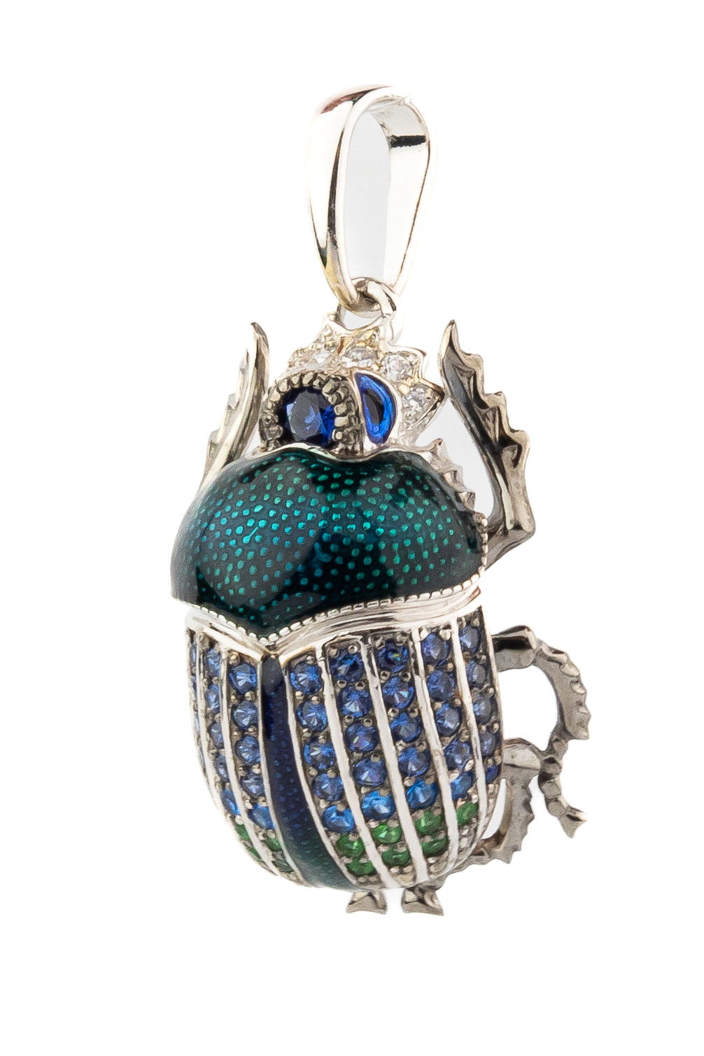 Подвеска из белого золота c эмалью, фианитом и сапфиром