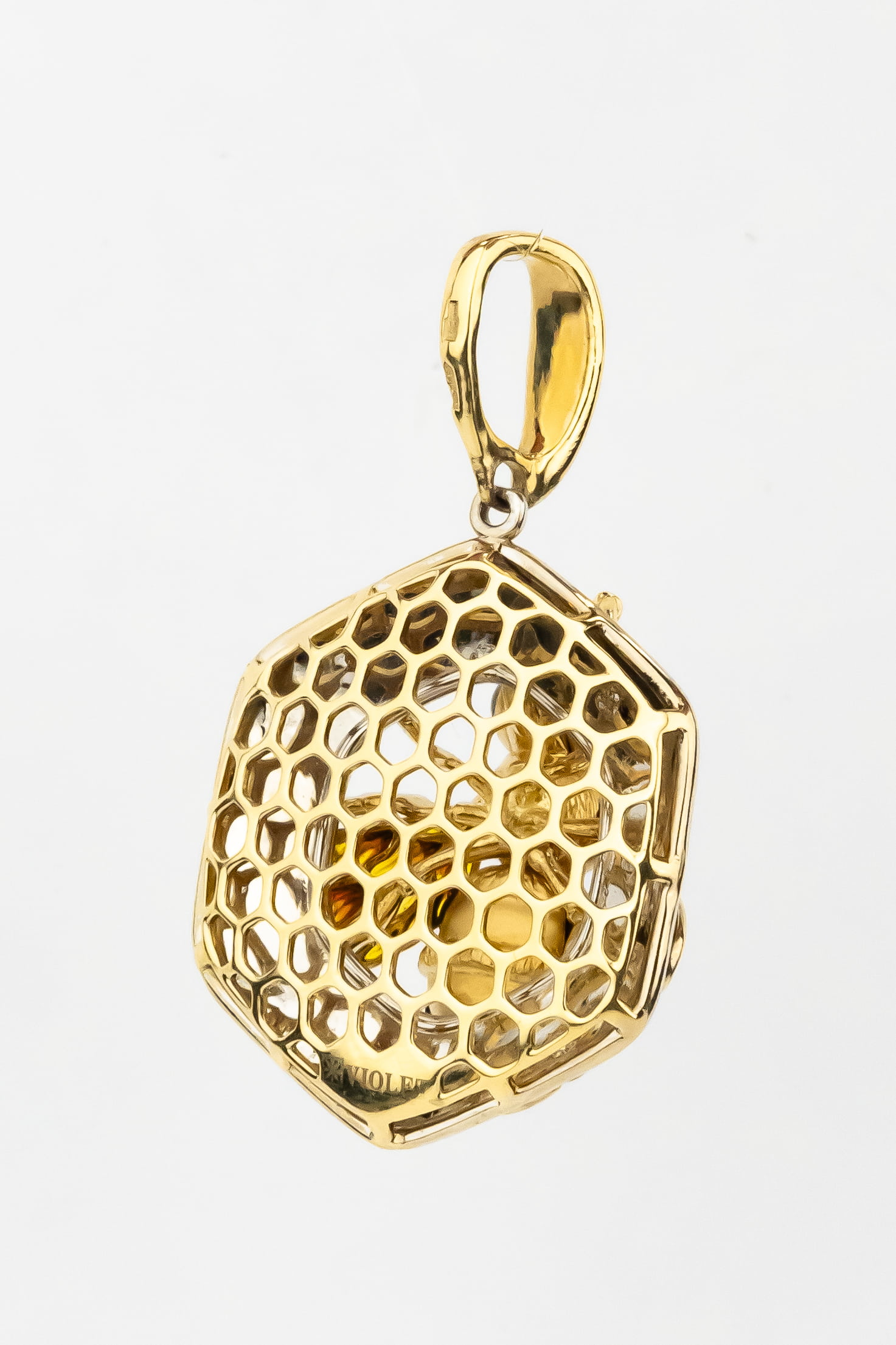 Подвеска из лимонного золота c эмалью, ониксом и эмалью