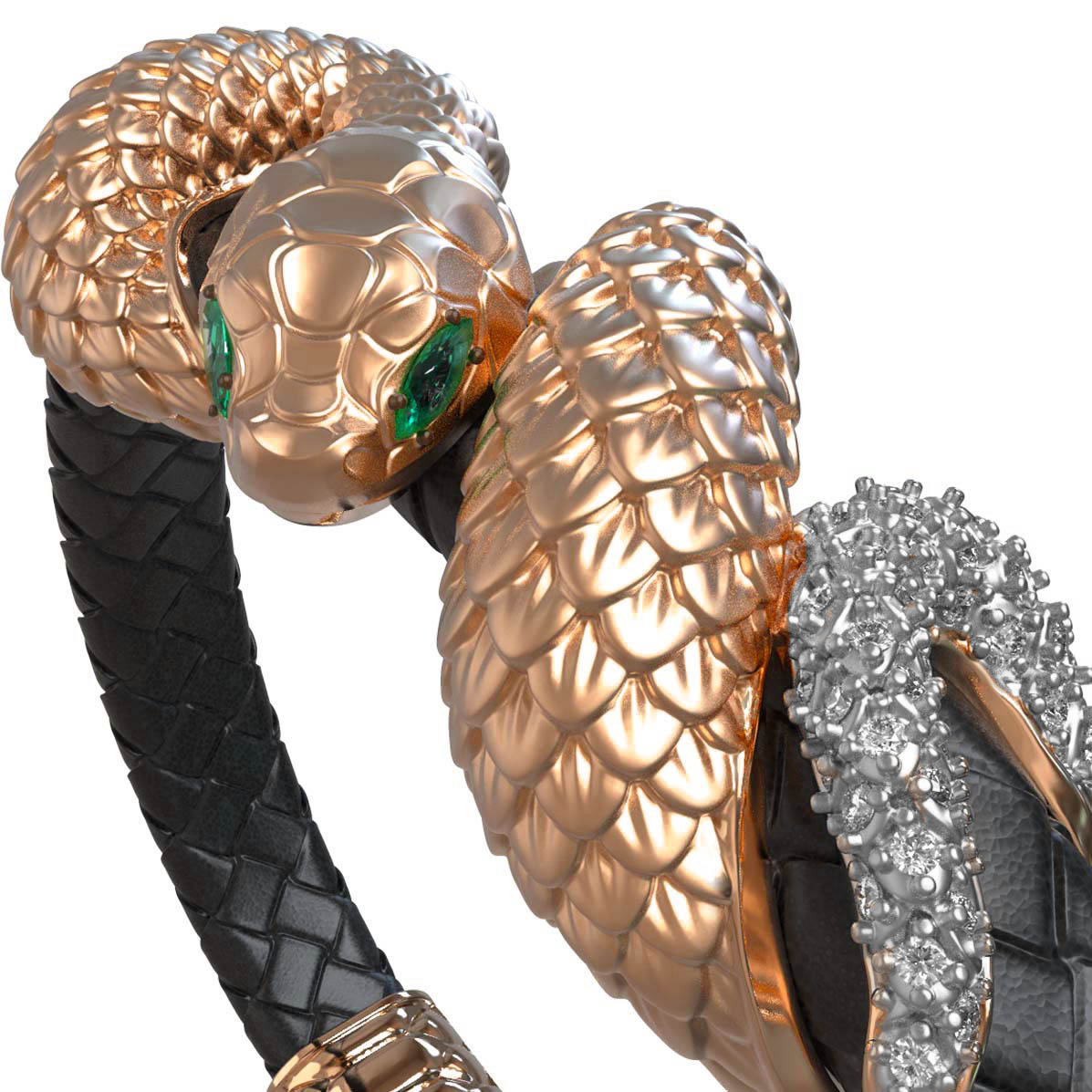 Браслет из золота c бриллиантами, изумрудом и шнурком