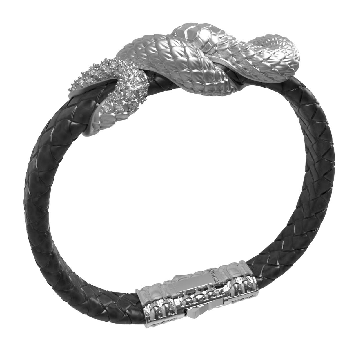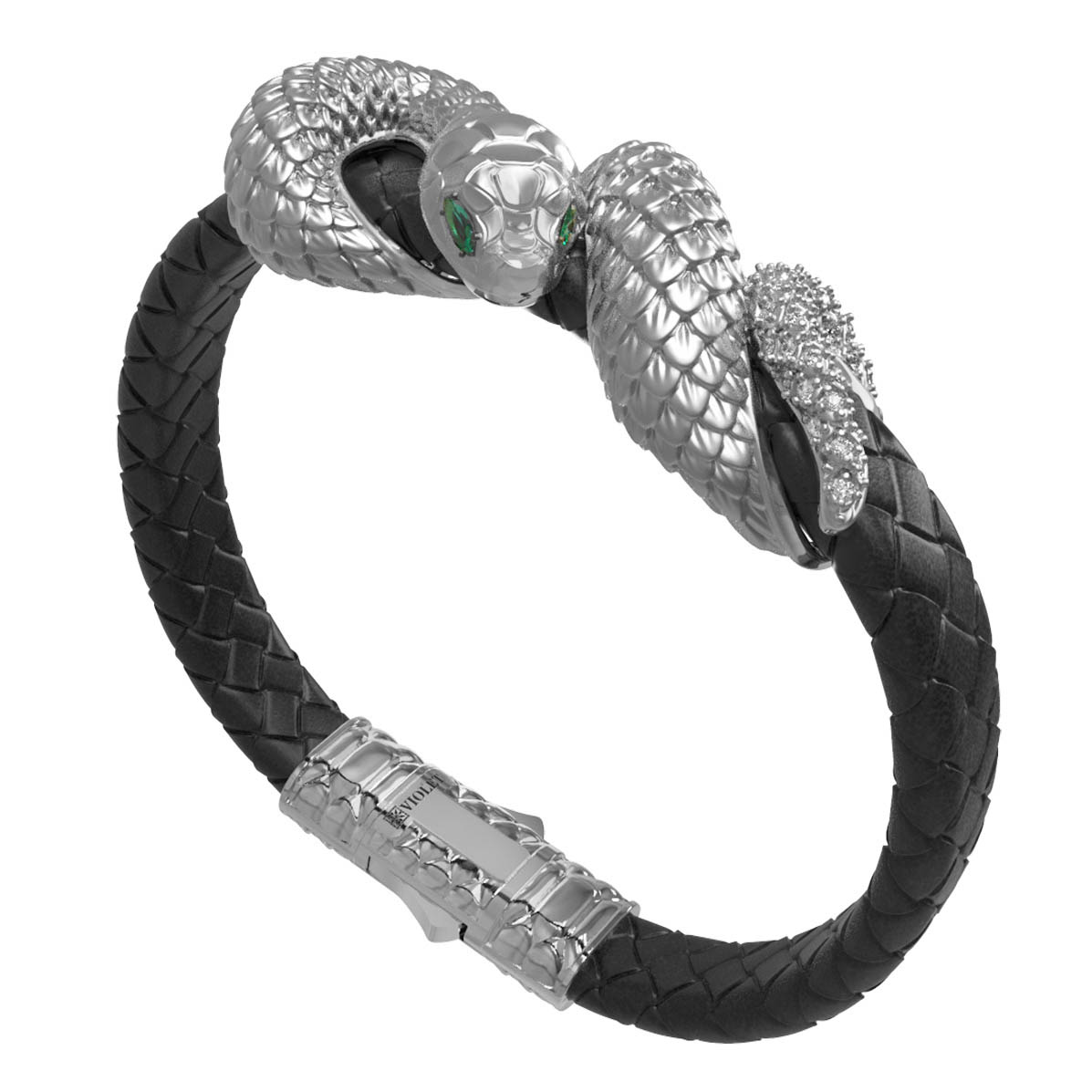 Браслет из белого золота c бриллиантами, изумрудом и шнурком