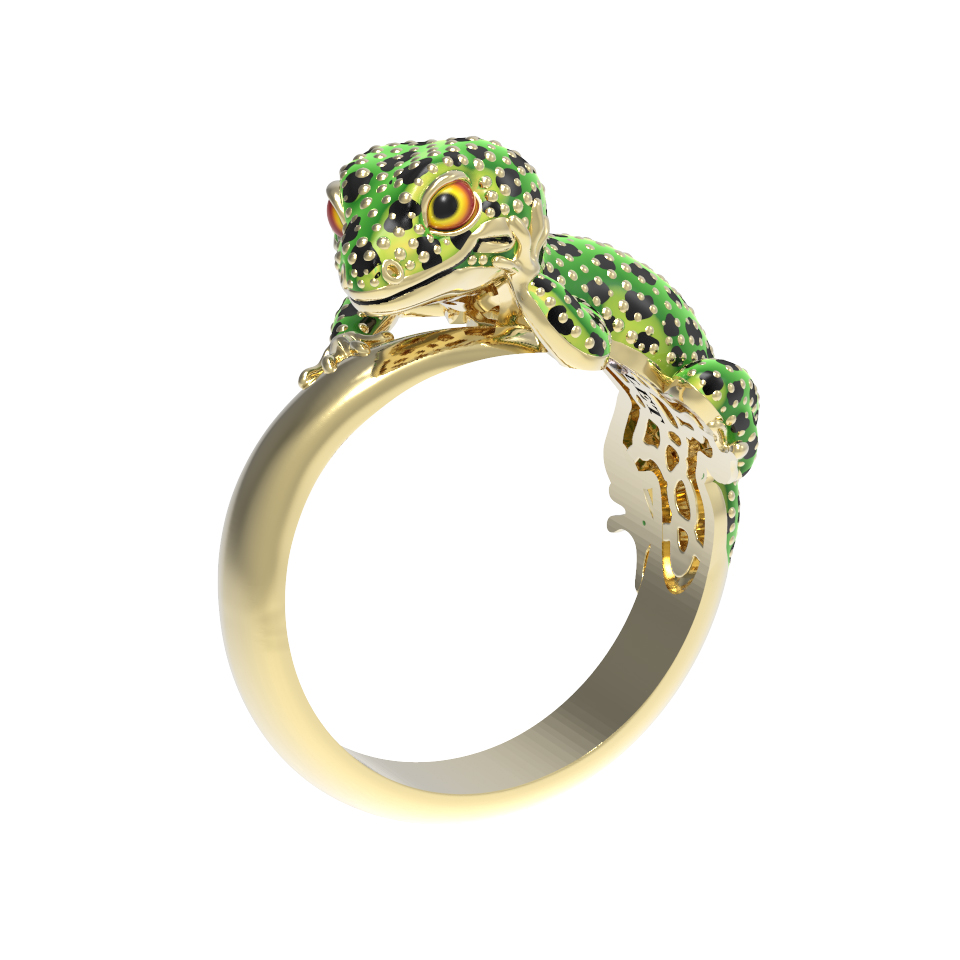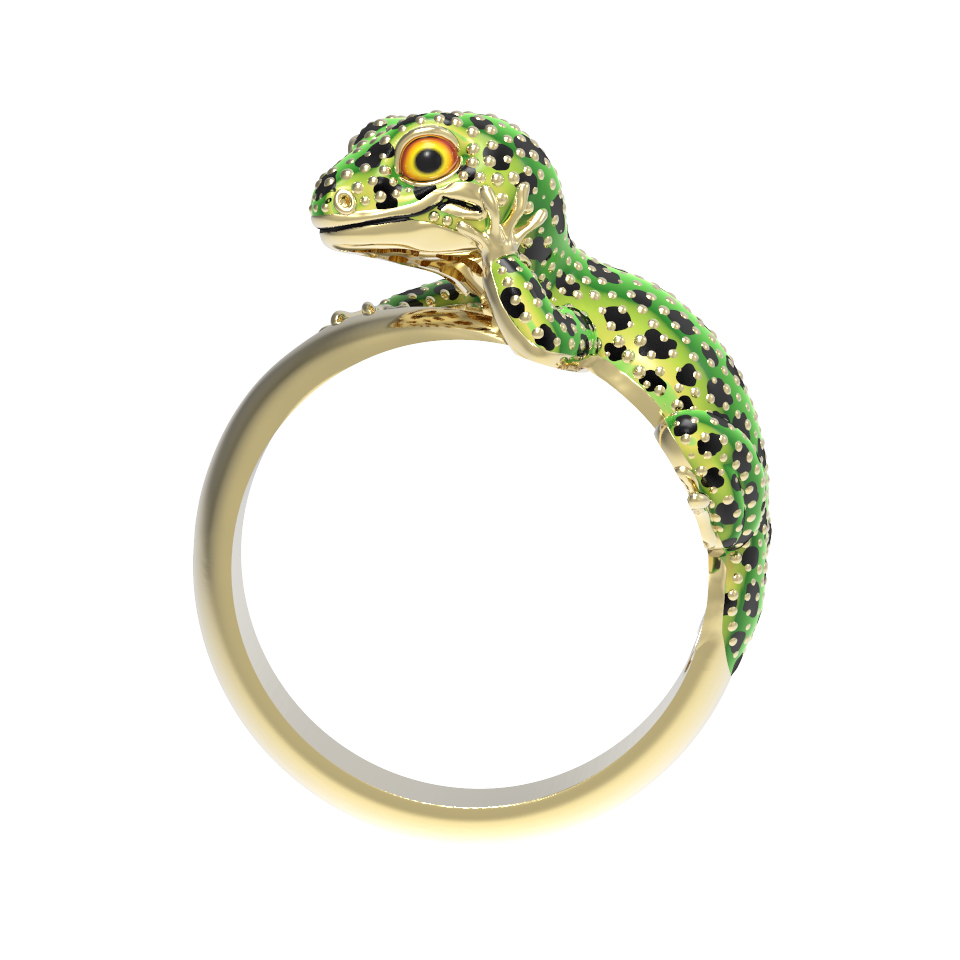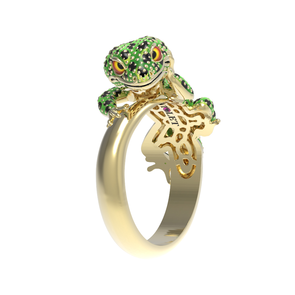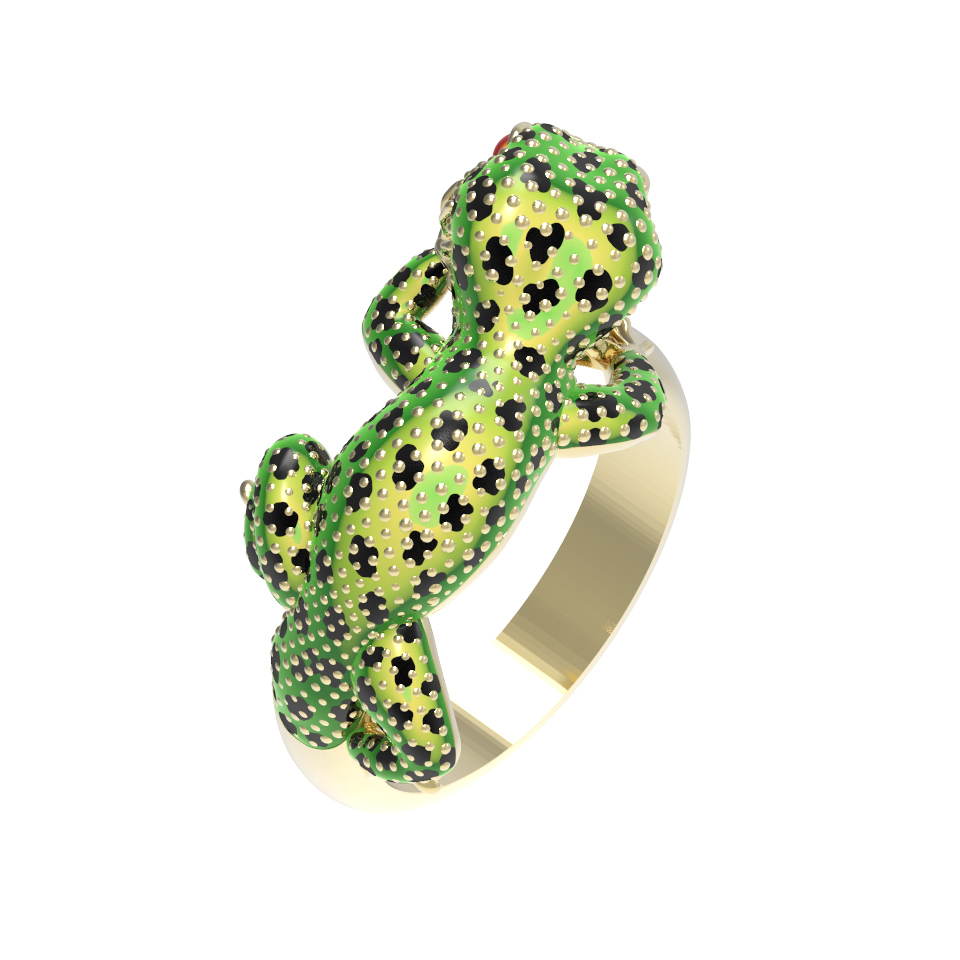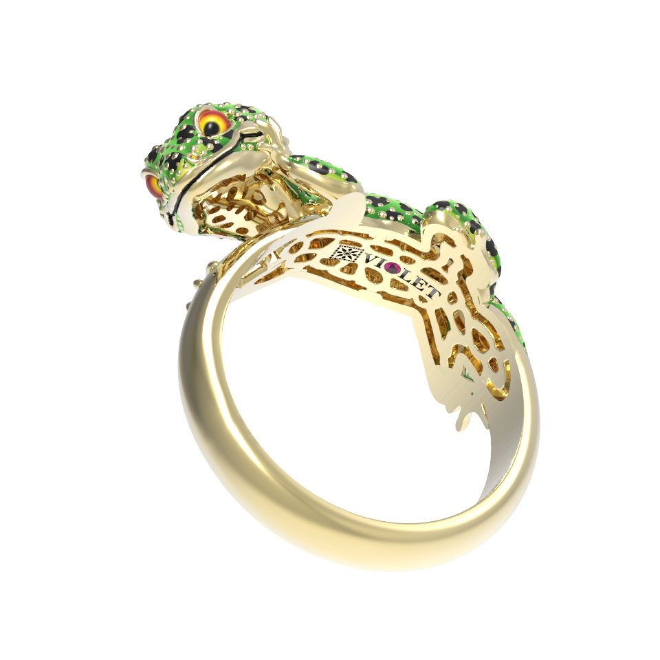 Кольцо из лимонного золота c эмалью и рубином