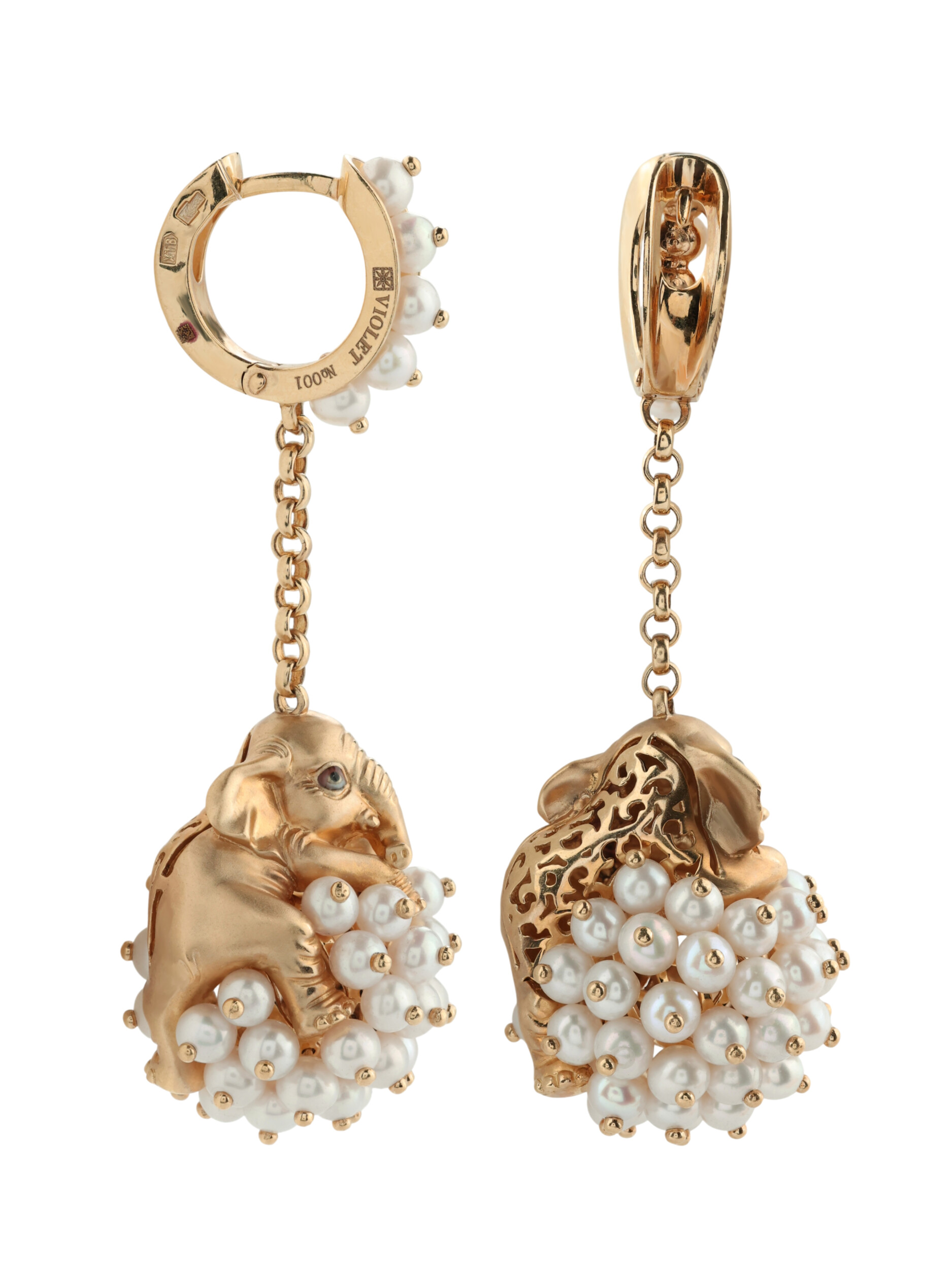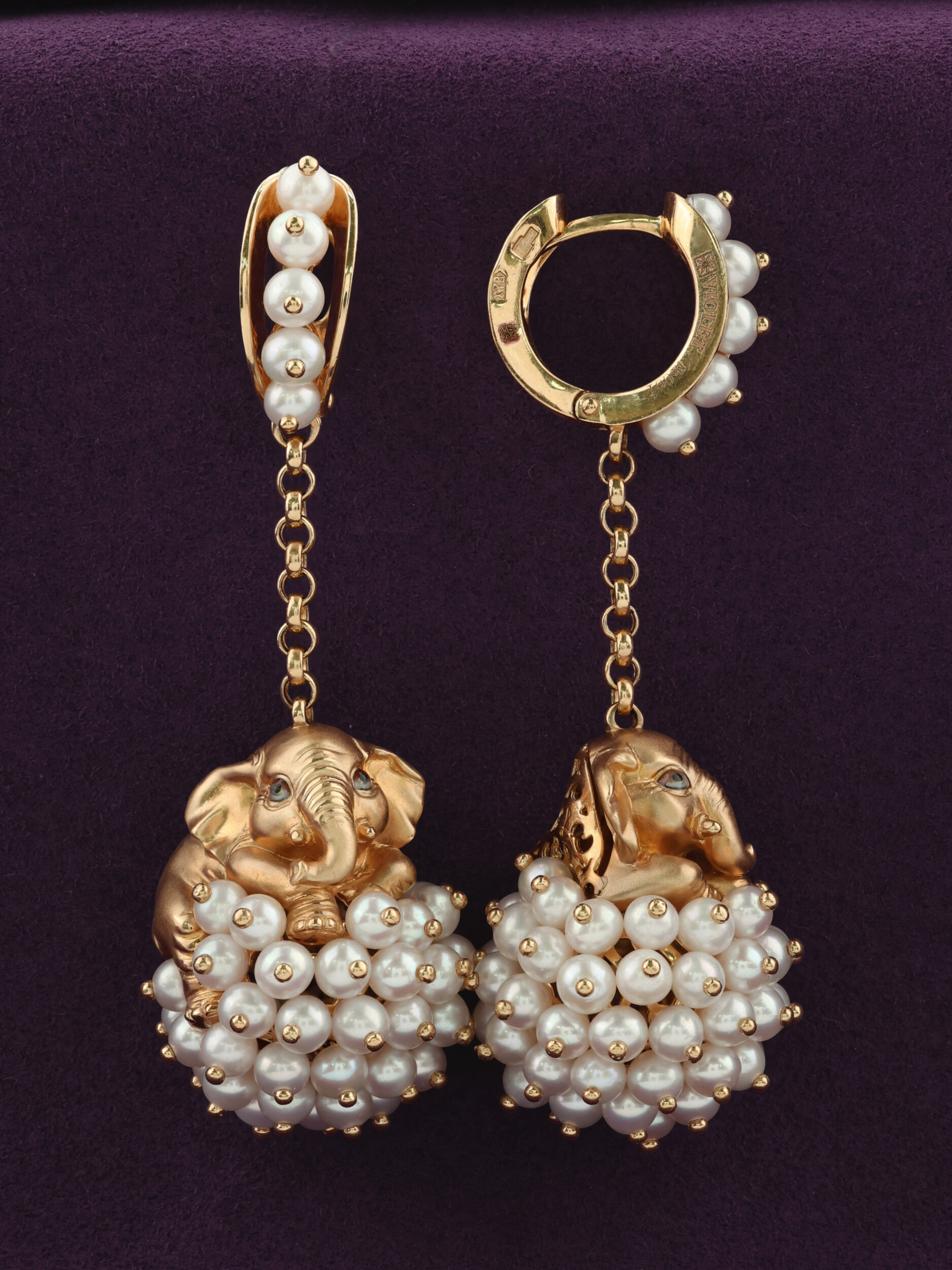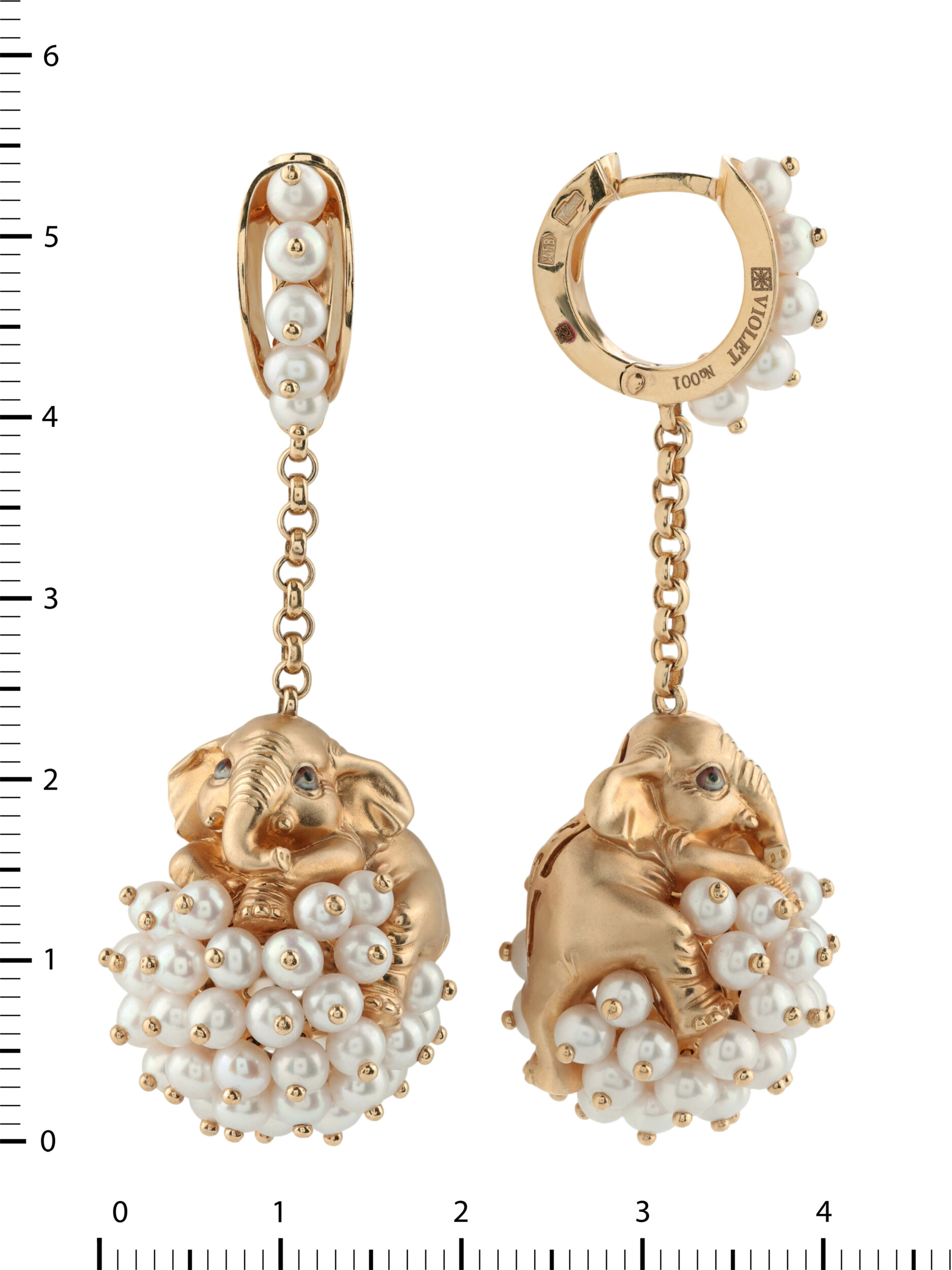 Серьги из золота c эмалью и жемчугом