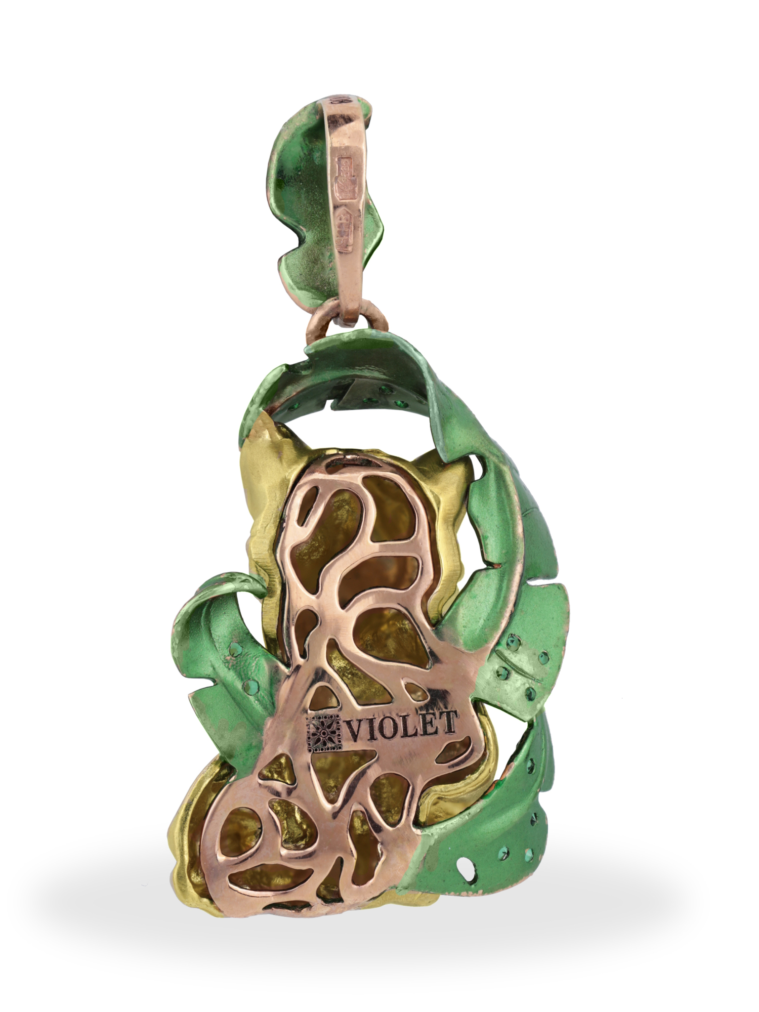 Подвеска из золота c эмалью и изумрудом
