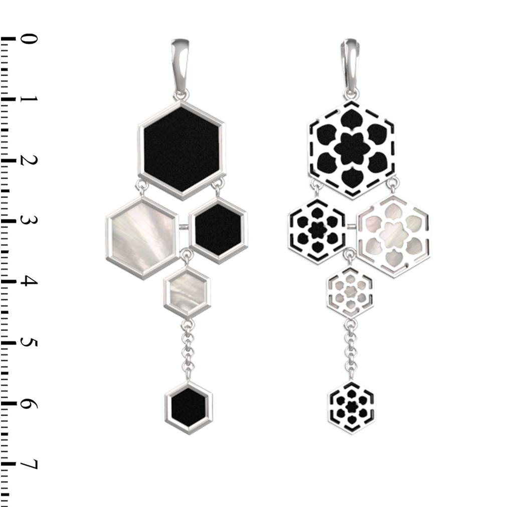 Подвеска из белого золота c ониксом и перламутром