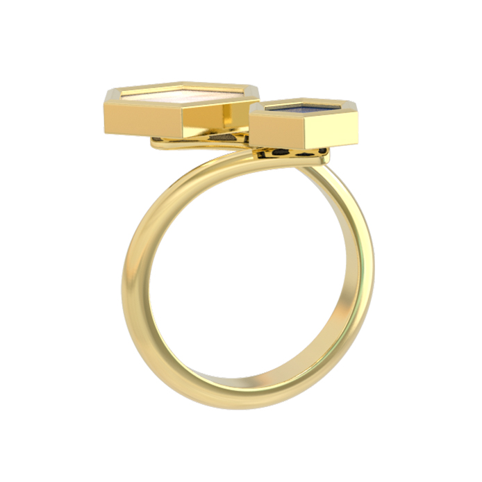 Кольцо из лимонного золота c лазуритом и перламутром