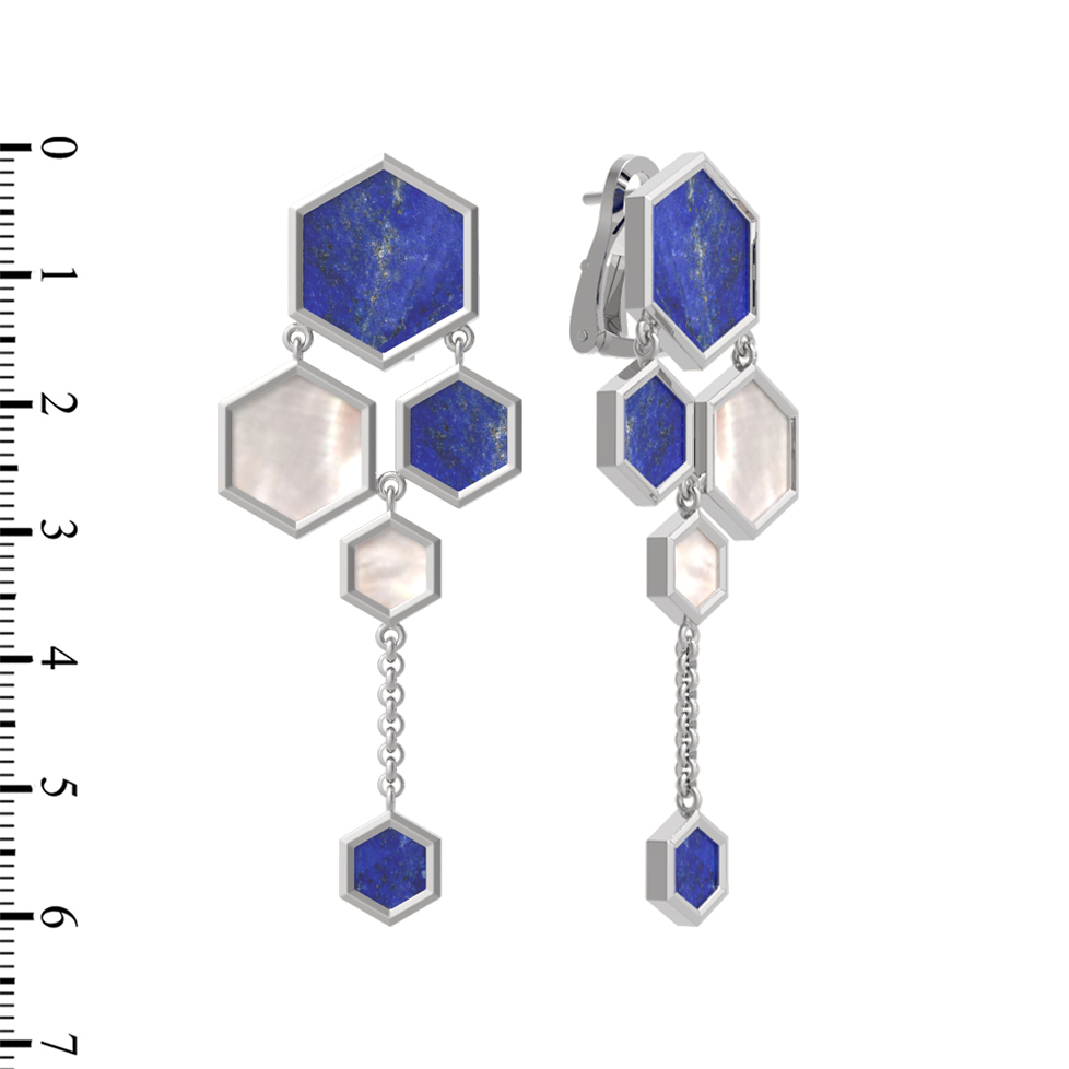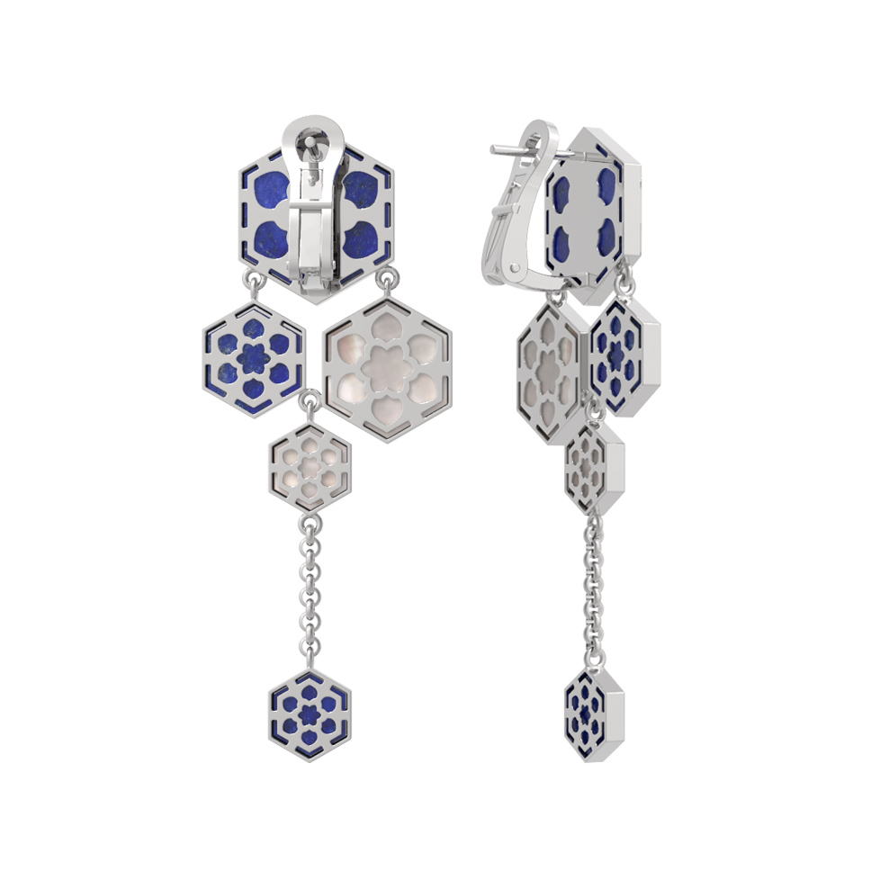 Серьги из белого золота c лазуритом и перламутром