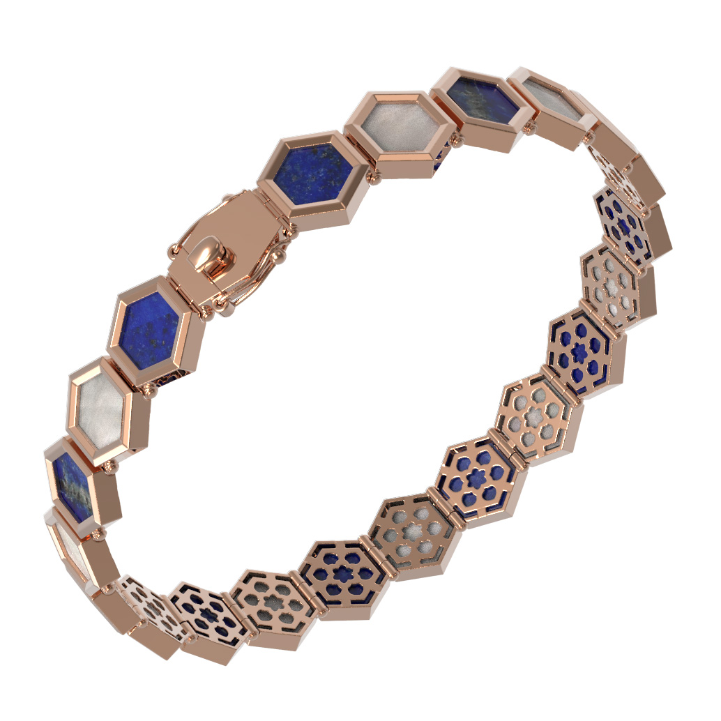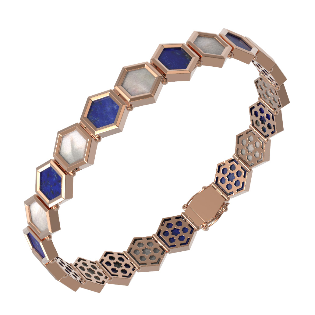 Браслет из золота c лазуритом и перламутром