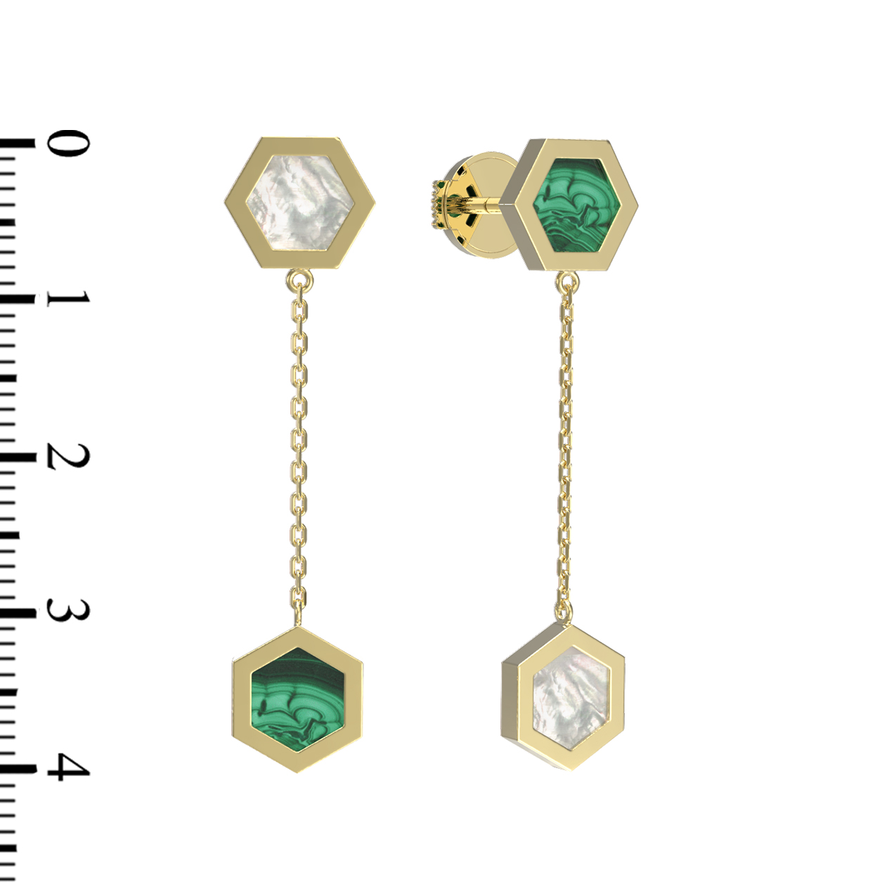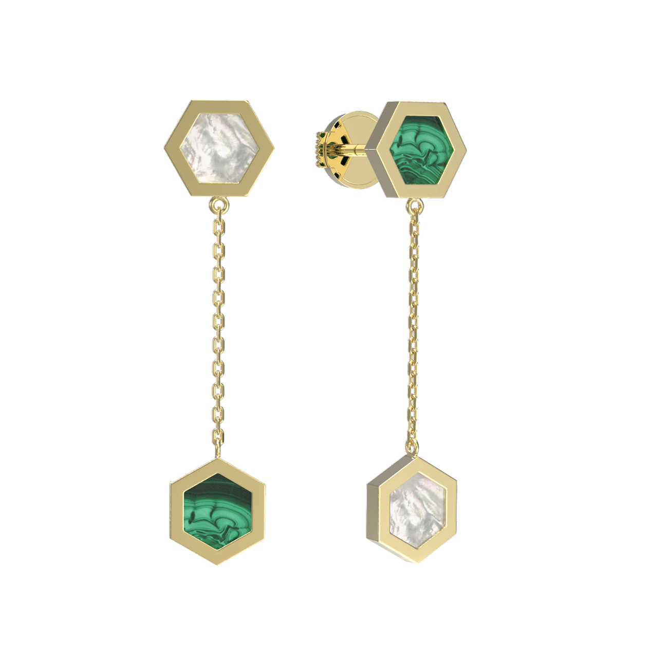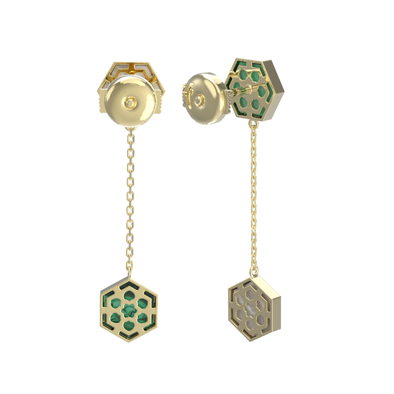 Серьги из лимонного золота c малахитом и перламутром